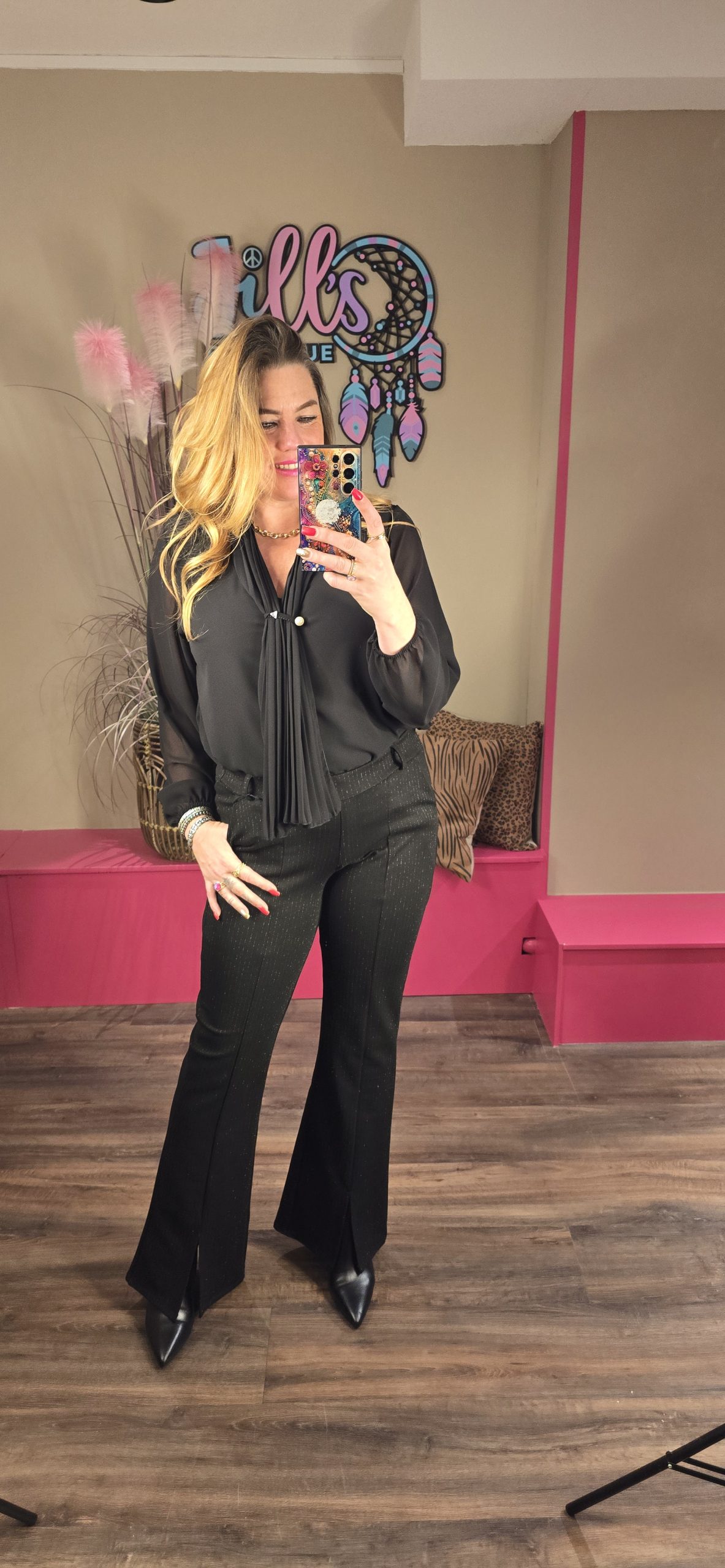 De blouses vallen ruimer, Jill heeft maat 40/42 en draagt hier maat L