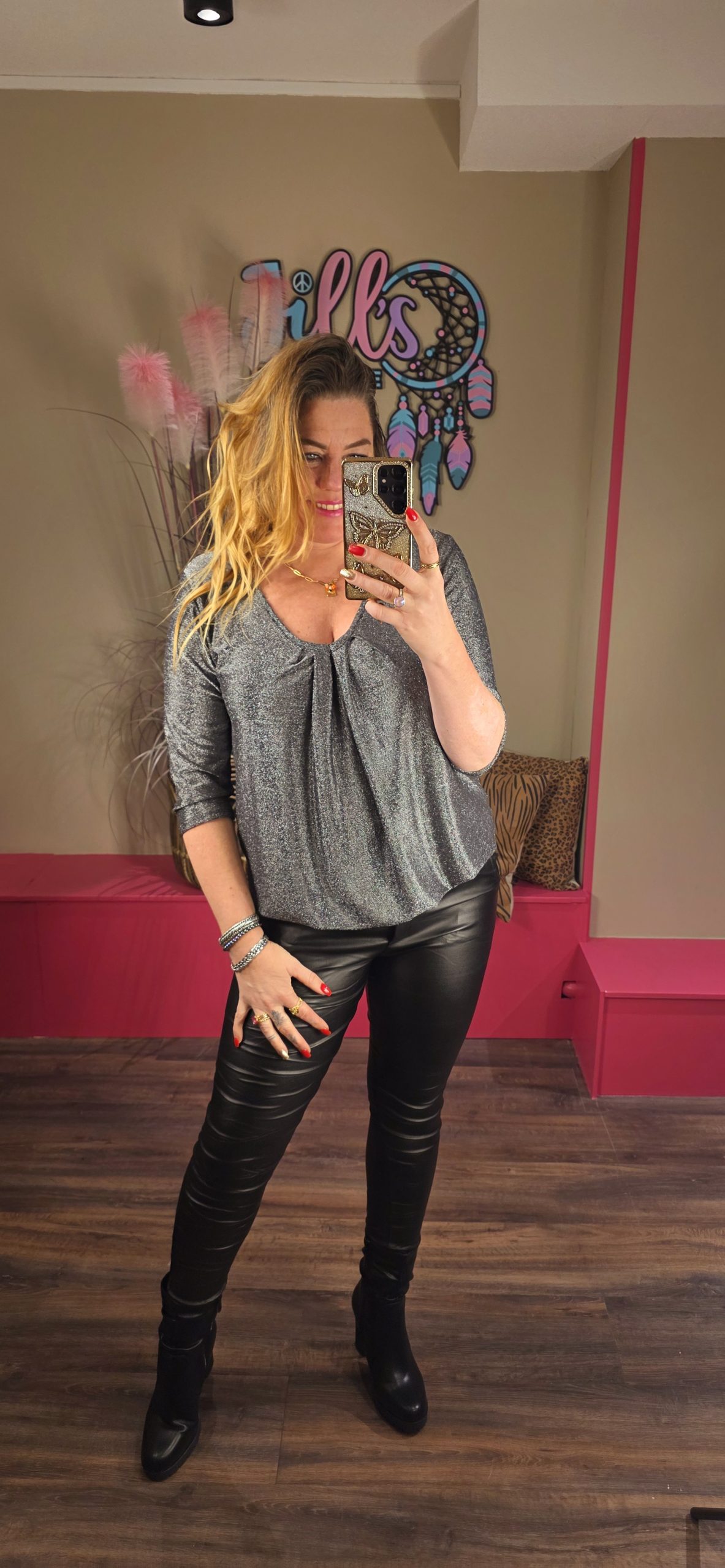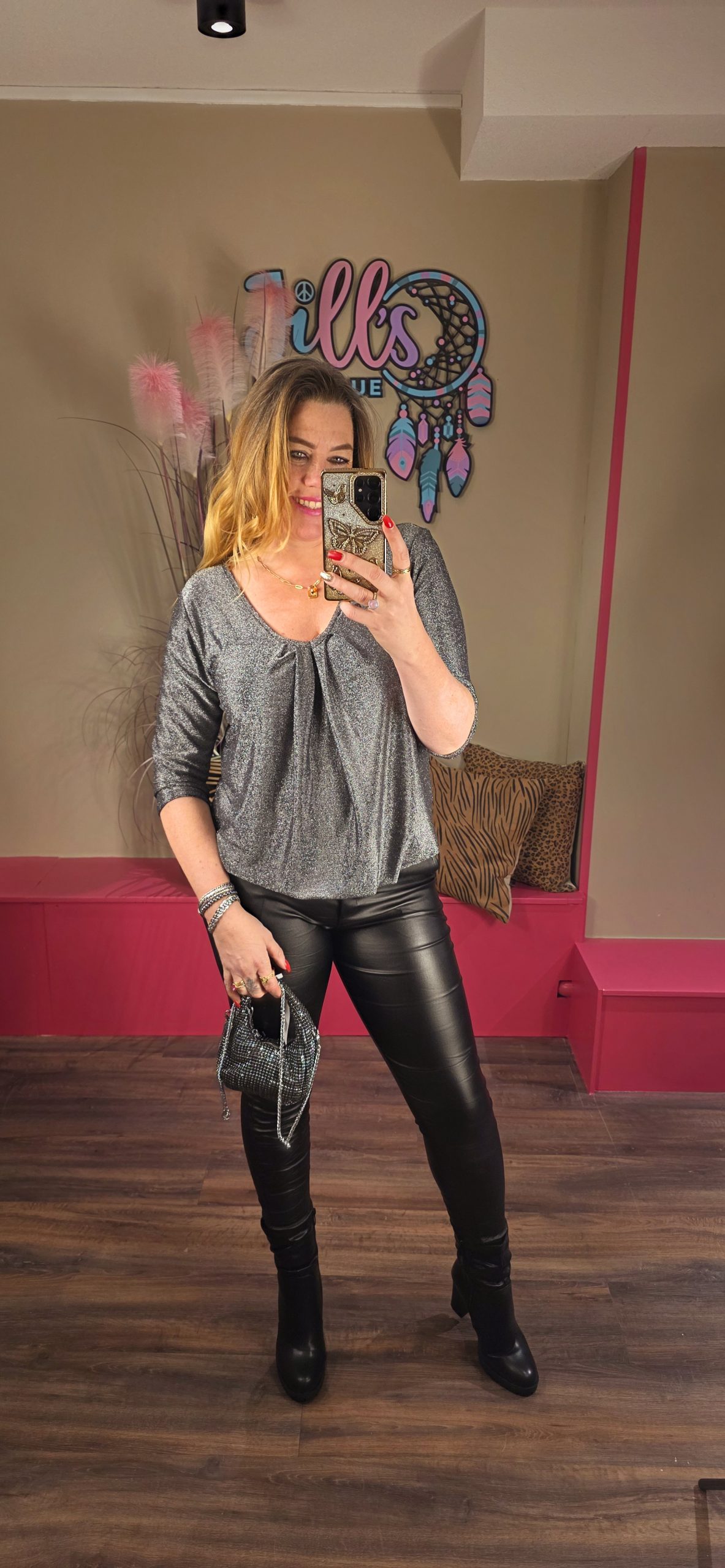 Super fijne travel ballon top, de top heeft een elatische boord onderin waardoor de top blousend valt en dus buikverhullend is.