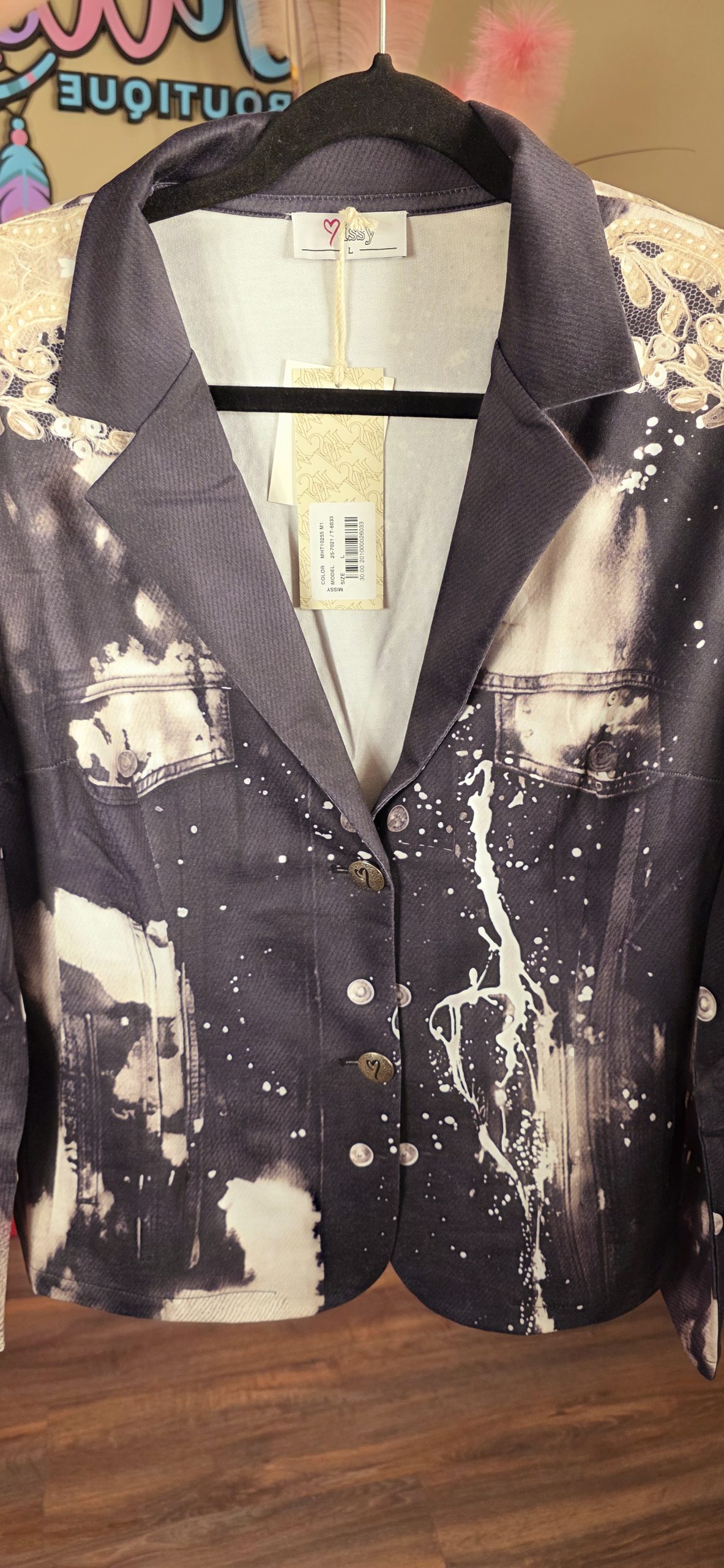 De blazers vallen in dubbele maten. Jill heeft van boven maat 40/42 en draagt hier maat L.