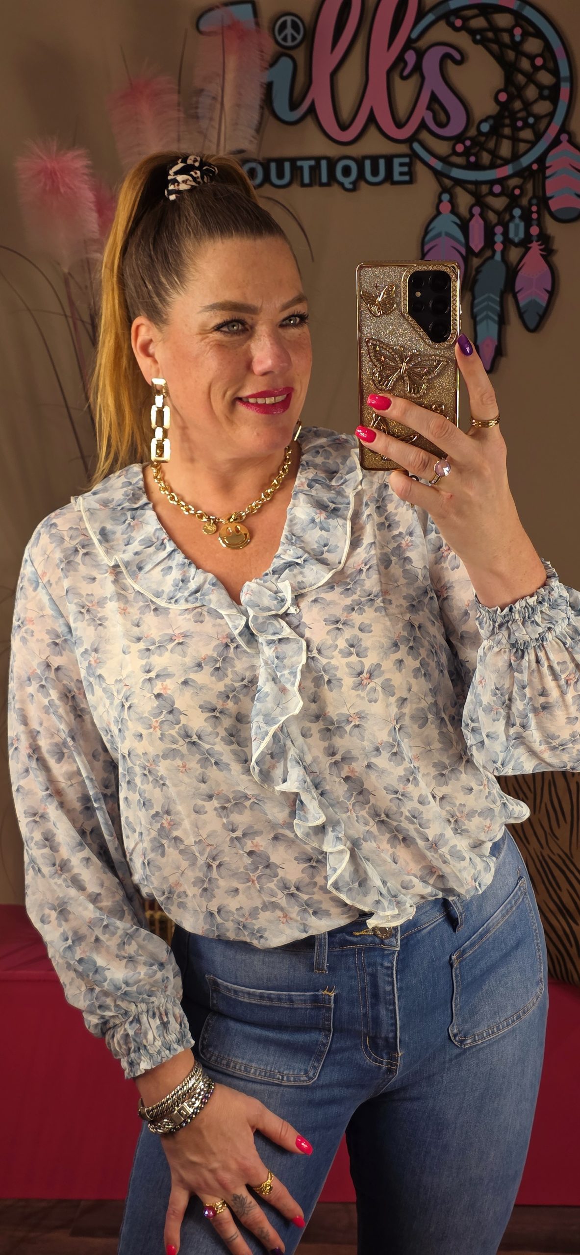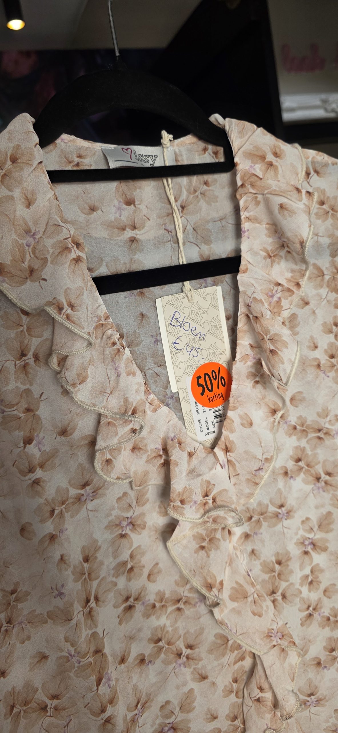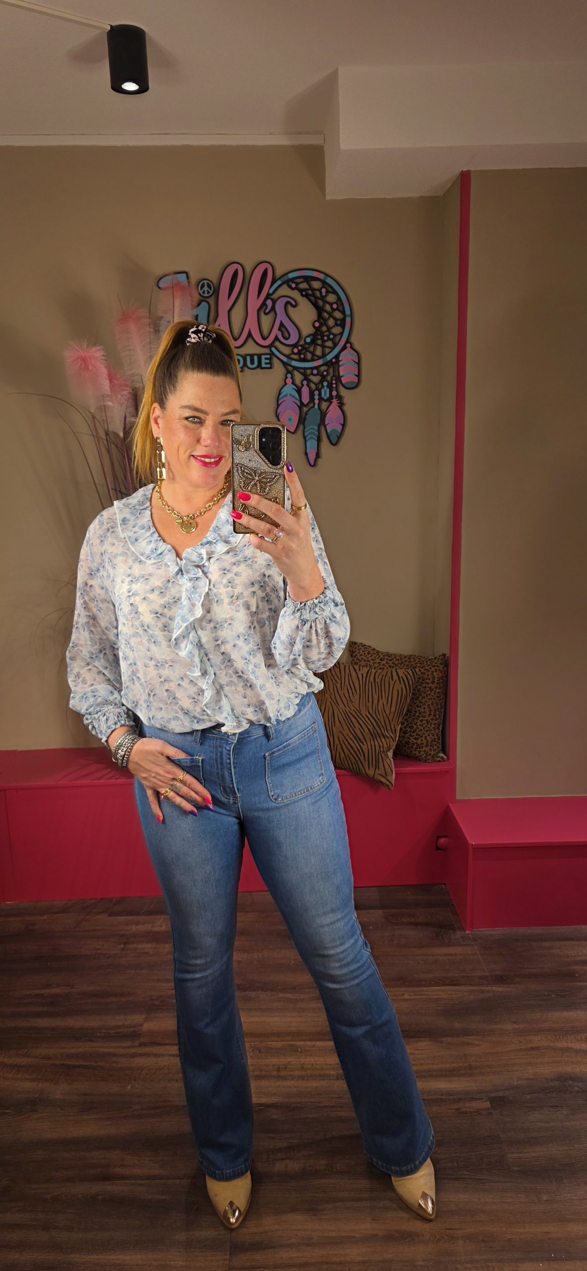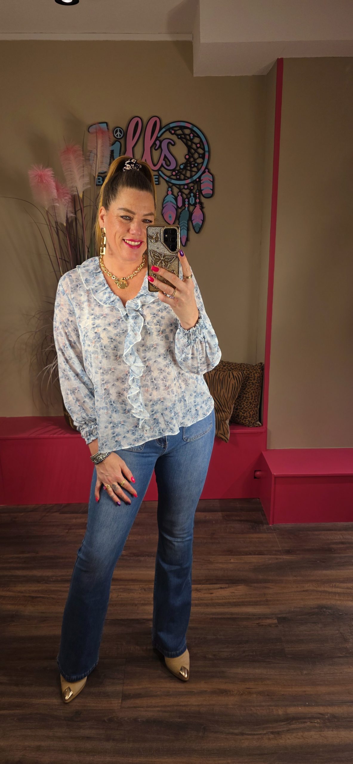 Mooie katoenen blouses met een leuke roesel op het voorpand.
