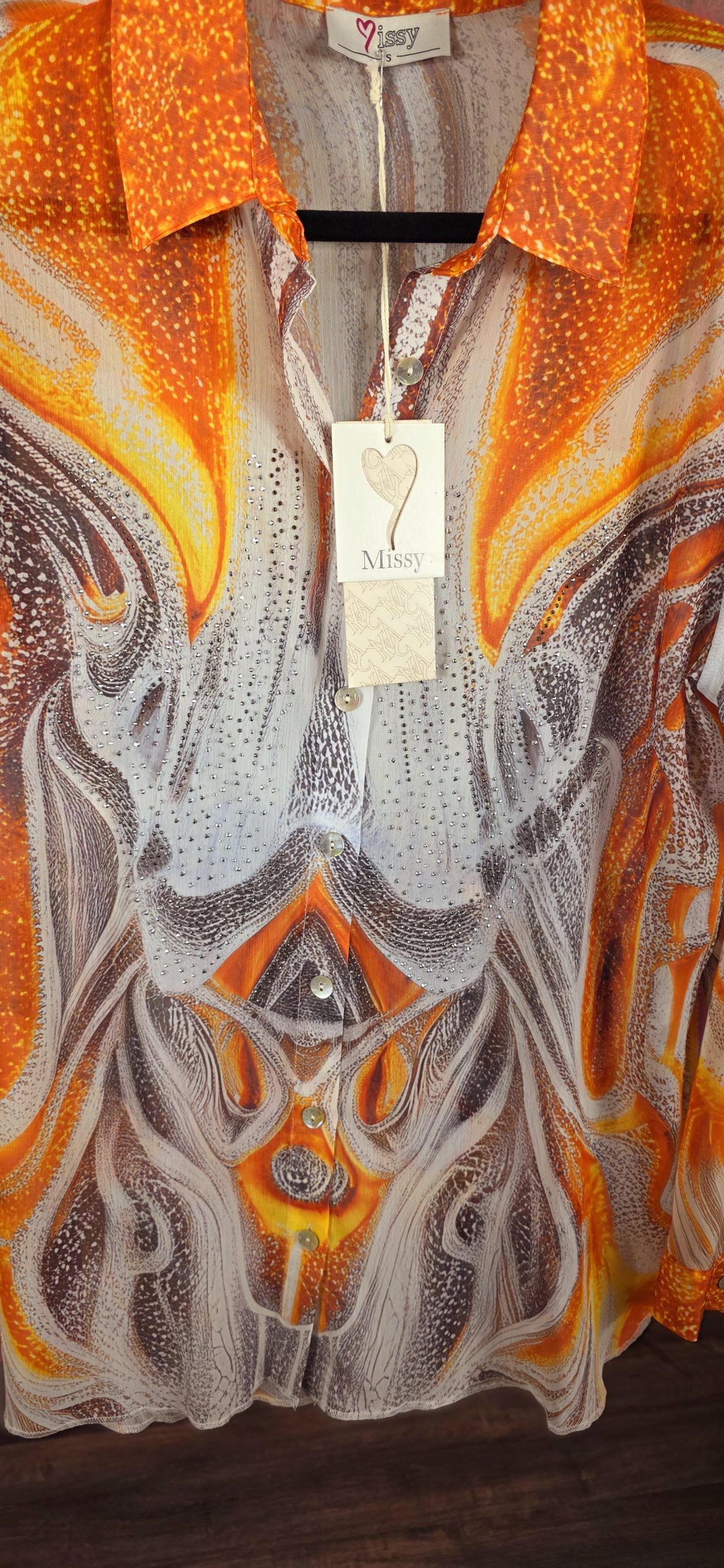 Blouse valt ruim uit, wij adviseren om de blouse een maat kleiner te bestellen.