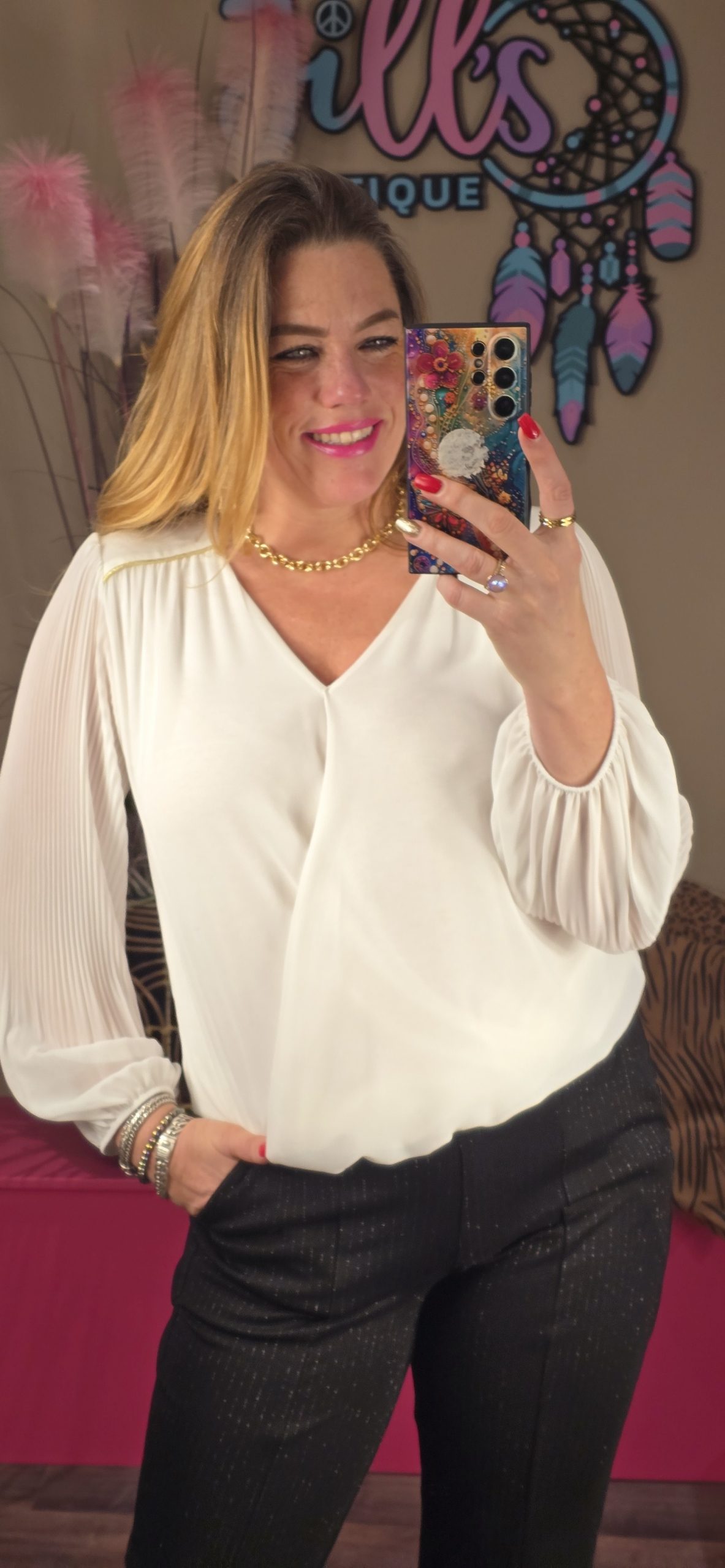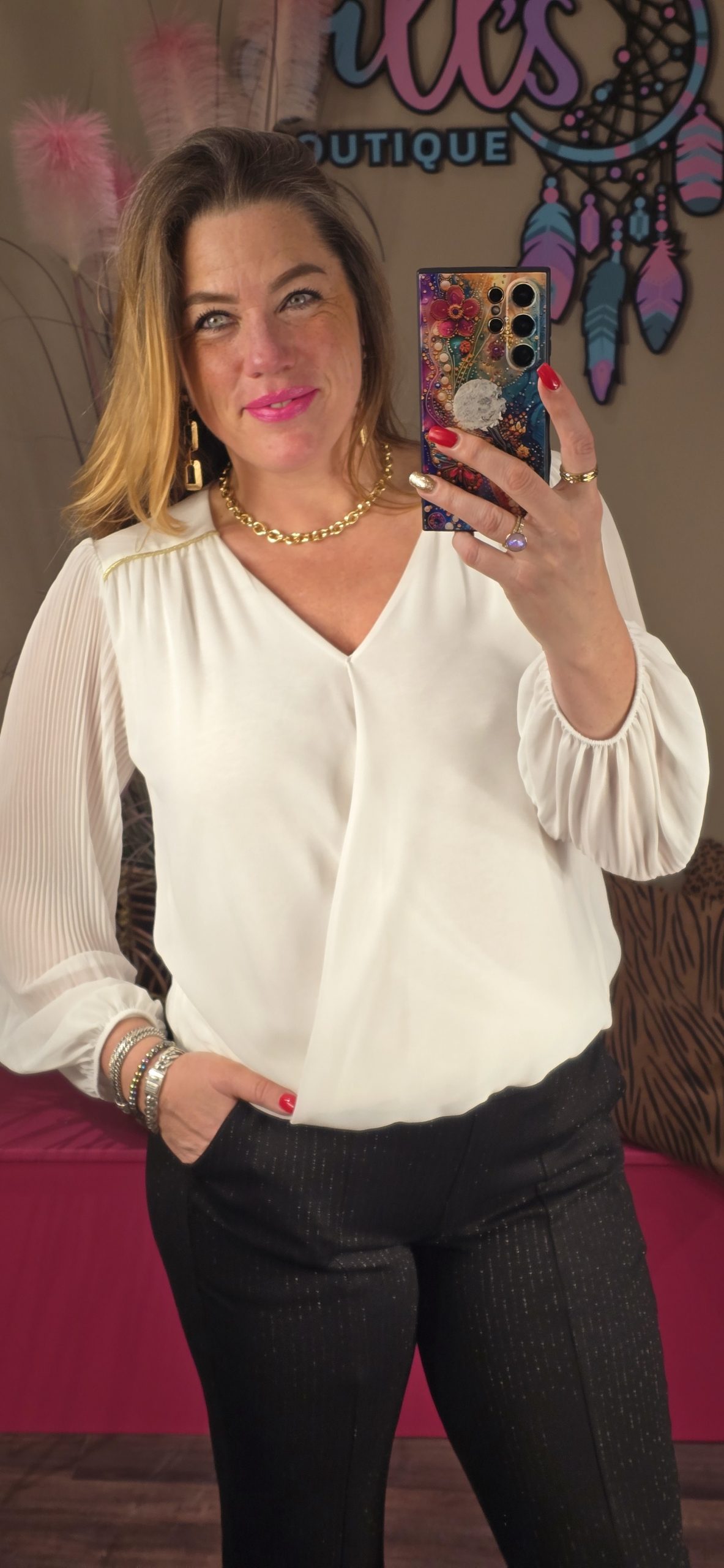 LET OP! De blouses hebben een overslag met een opening aan de voorkant dus of een mooie BH eronder of een mooi hempje.
