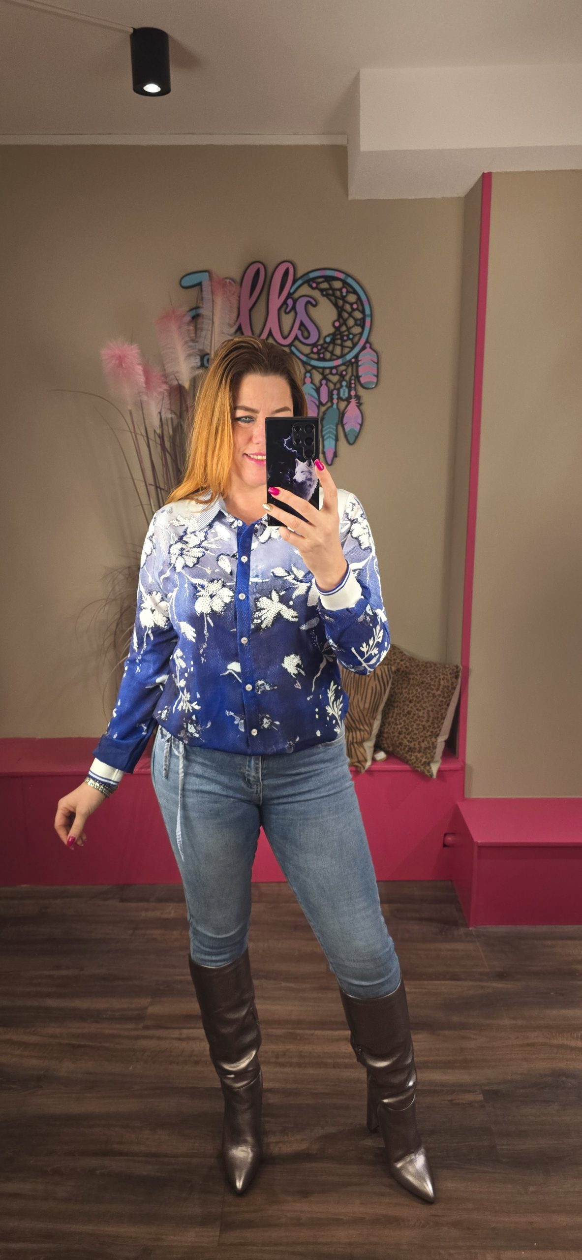 De blouses vallen ruim, Jill heeft maat 40/42 van boven en draagt hier maat M.