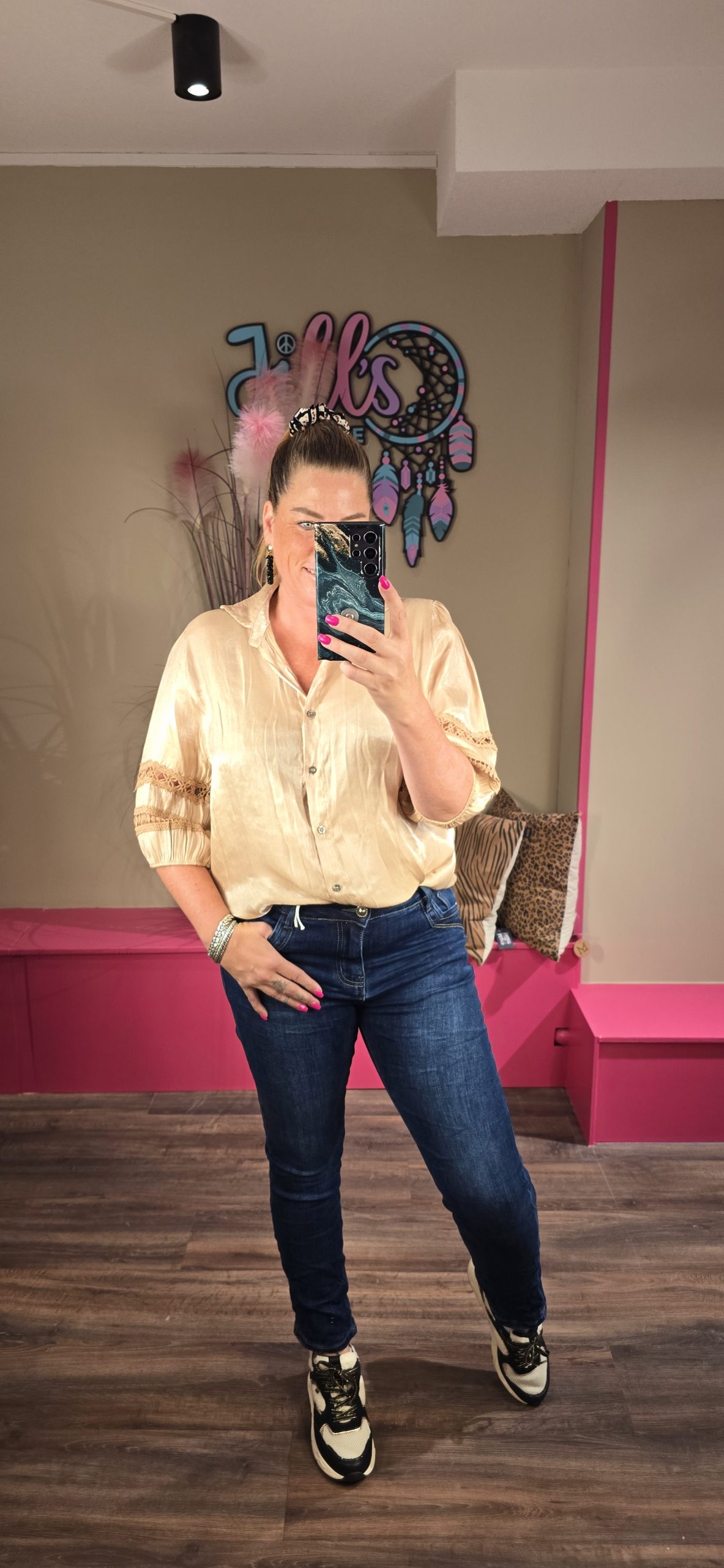 De broeken vallen goed op maat, Jill heeft maat 40 en draagt hier maat L.
