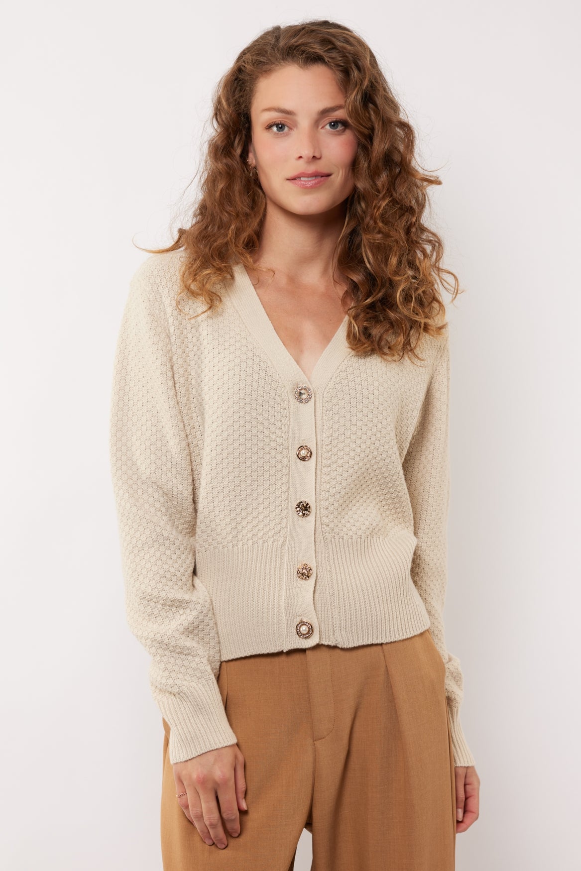 Mooi zacht vest met sluiting dmv mooie verschillende knopen op het voorpand.
