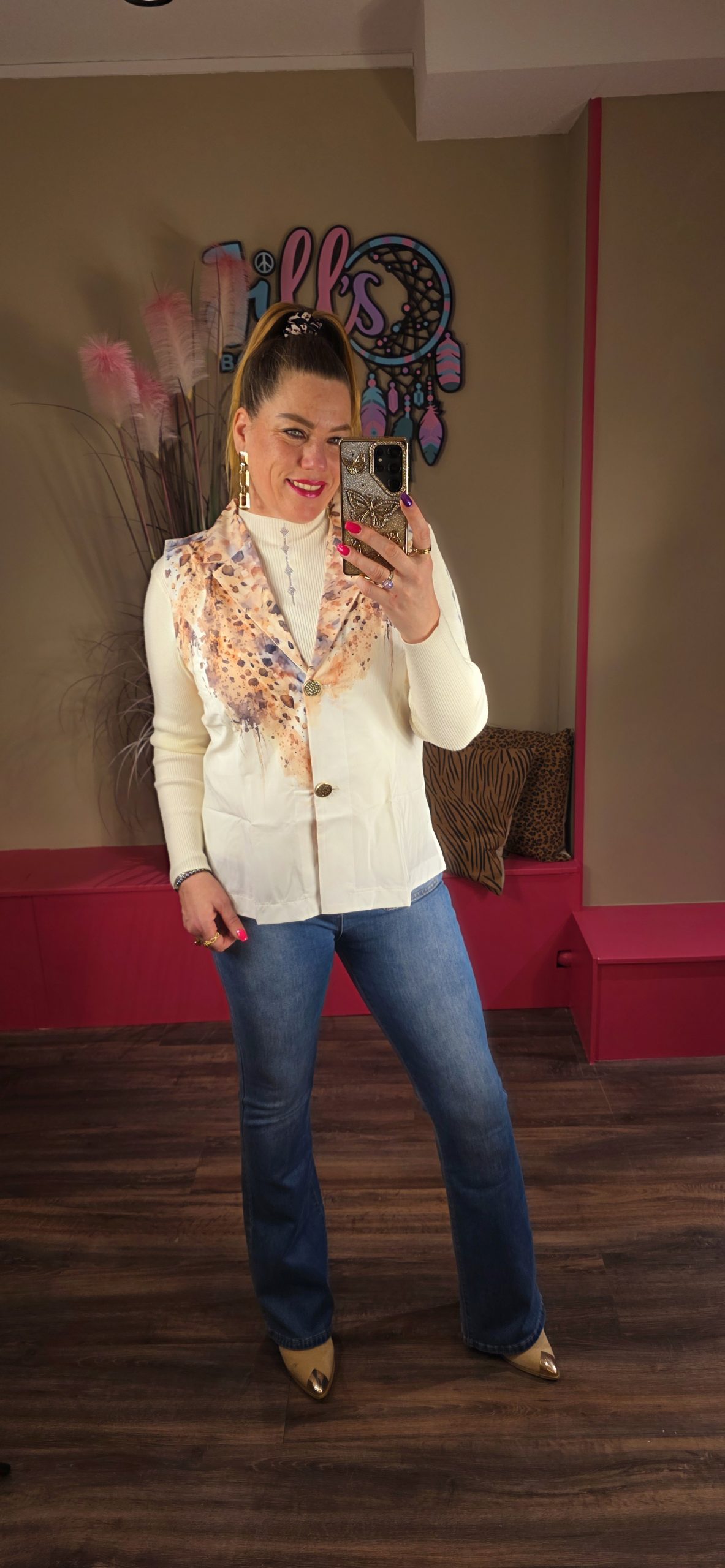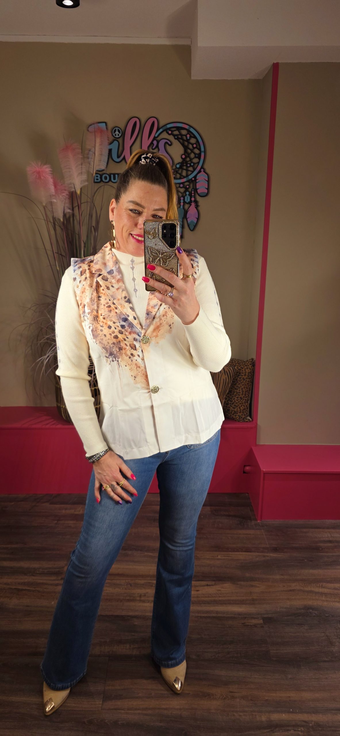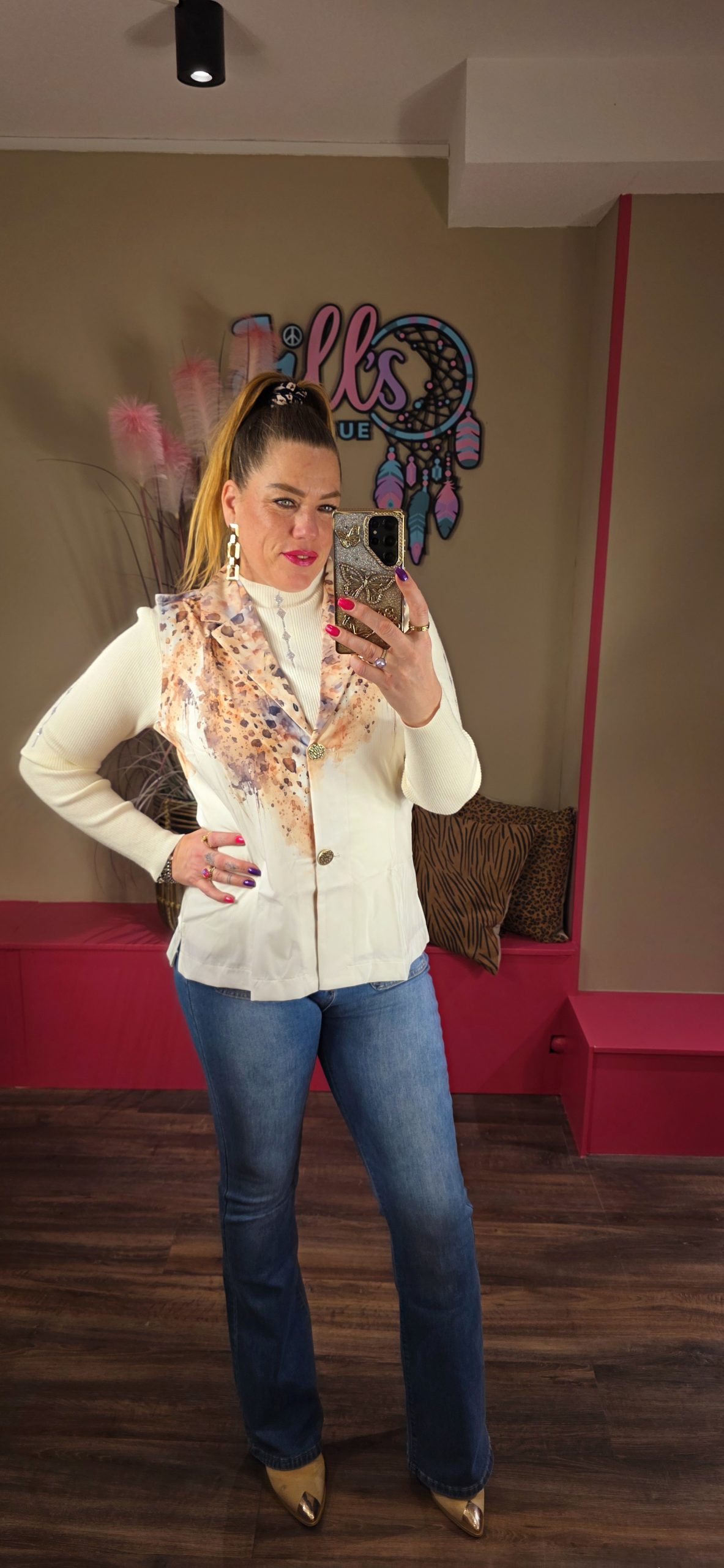 Gave gilets die je leuk over een kolletje kunt dragen, de gilets hebben een mooie getailleerde pasvorm en zijn bewerkt met gave glitters op de achterkant.