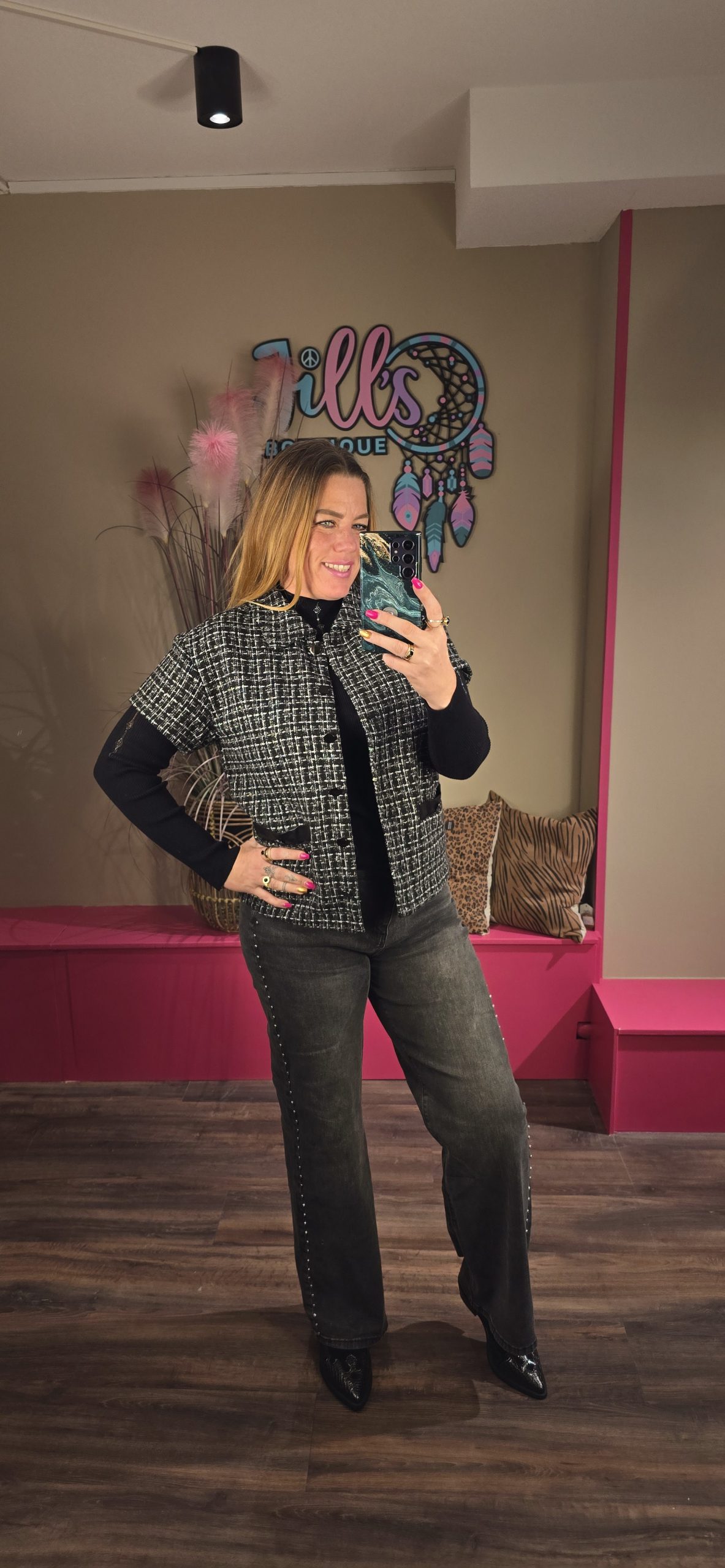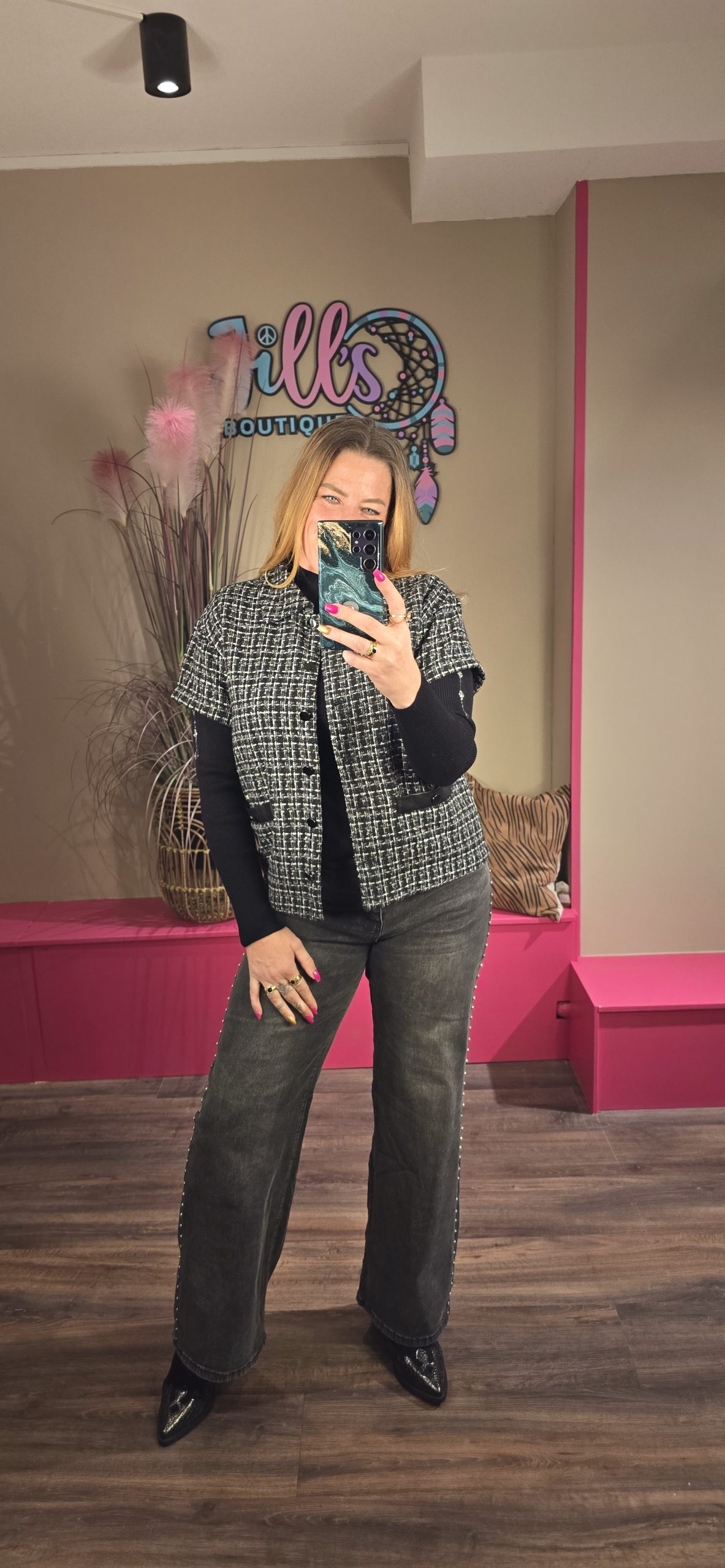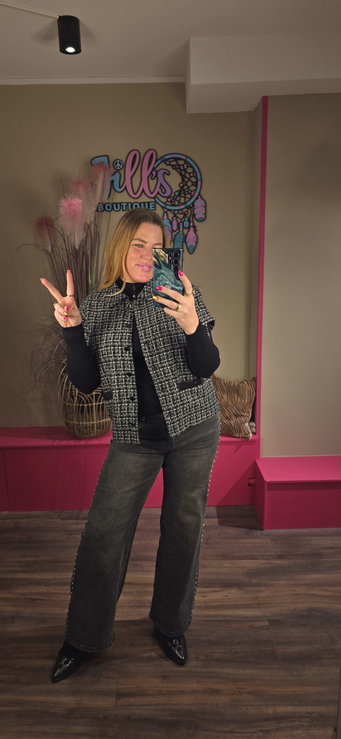 De gilets hebben een lurex draadje in de stof verwerkt, echt zo mooi.