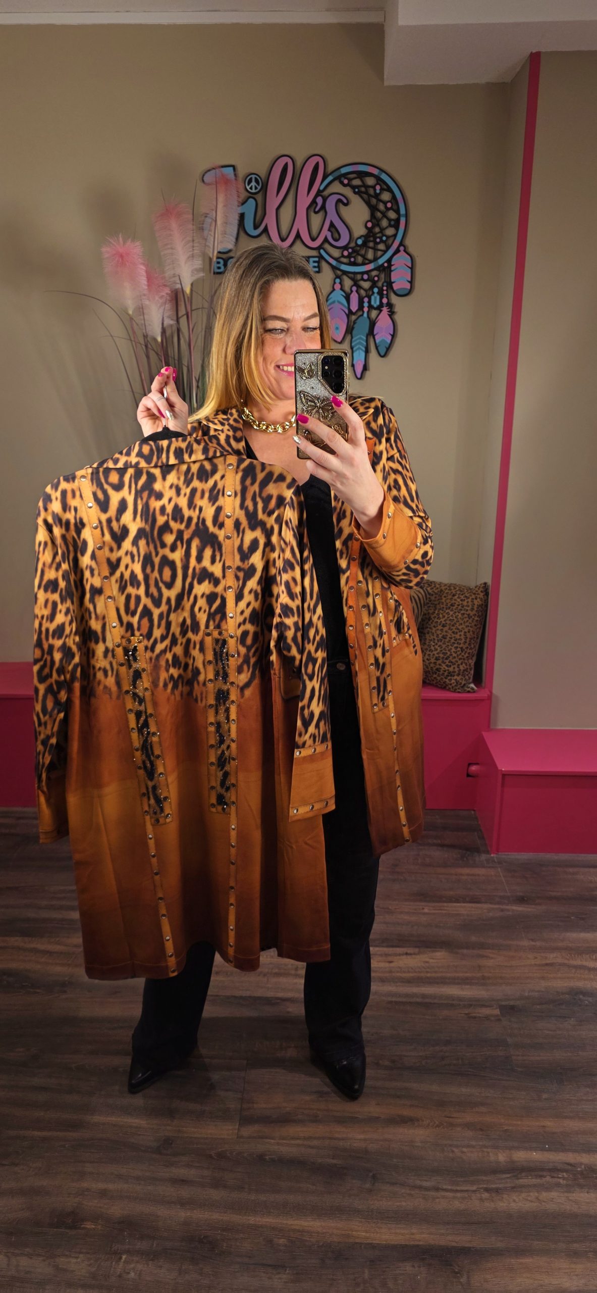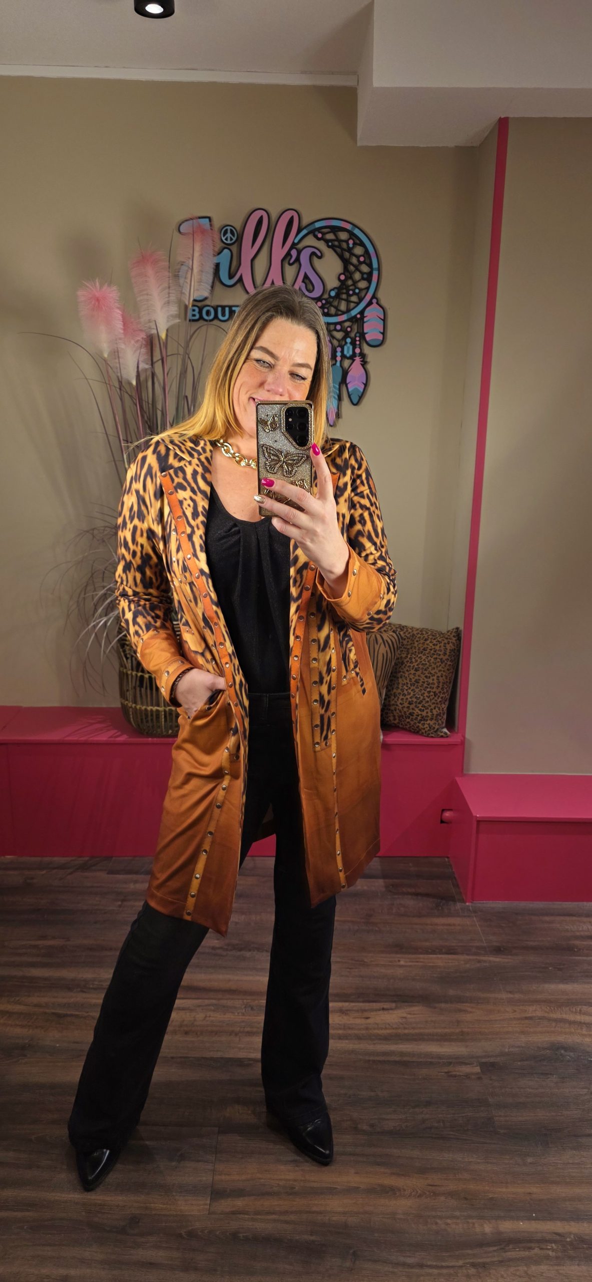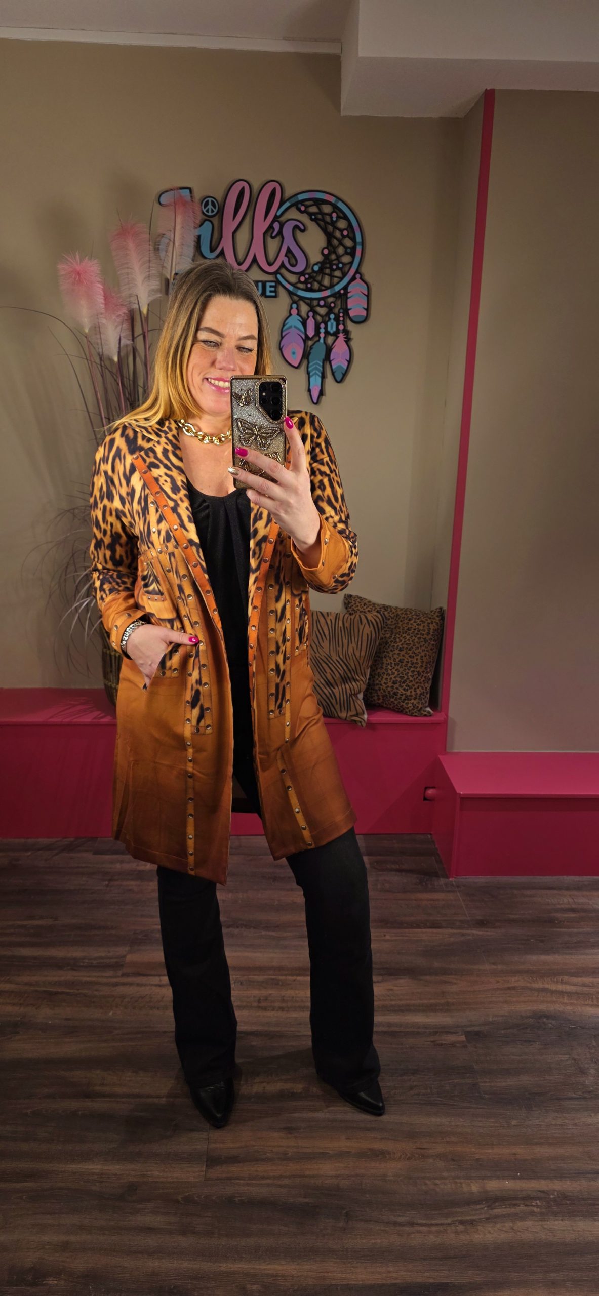 De blazer jassen vallen ruim uit, Jill draagt hier maat S/M en zij heeft zelf maat 40/42