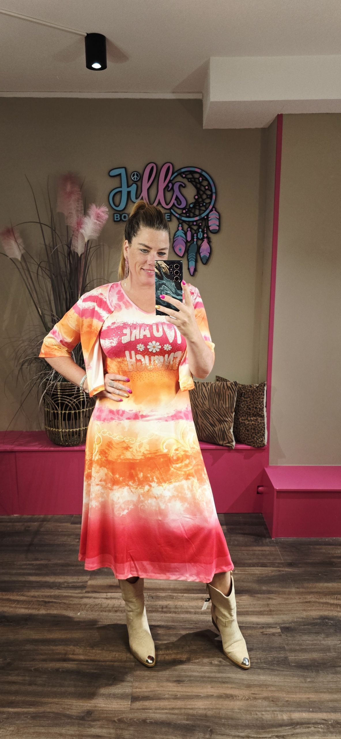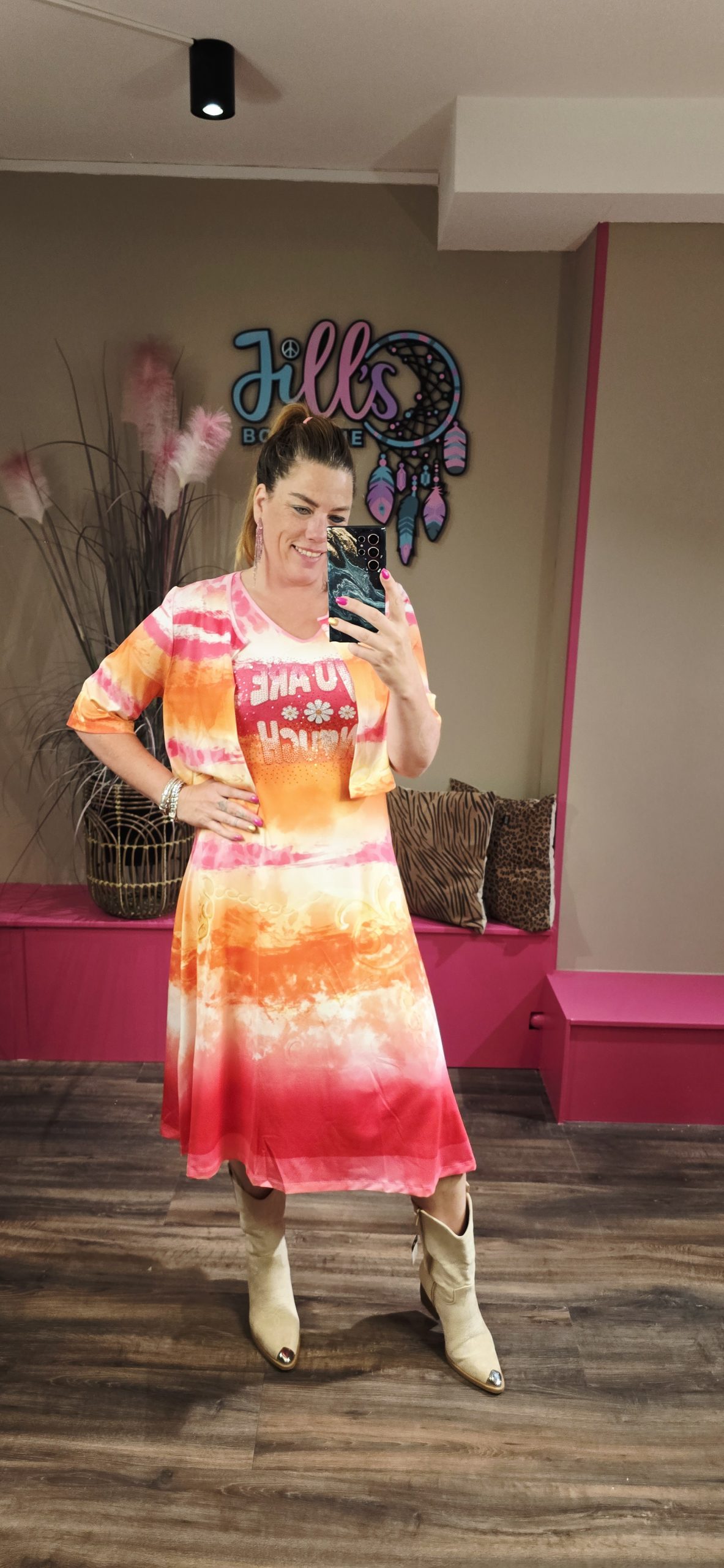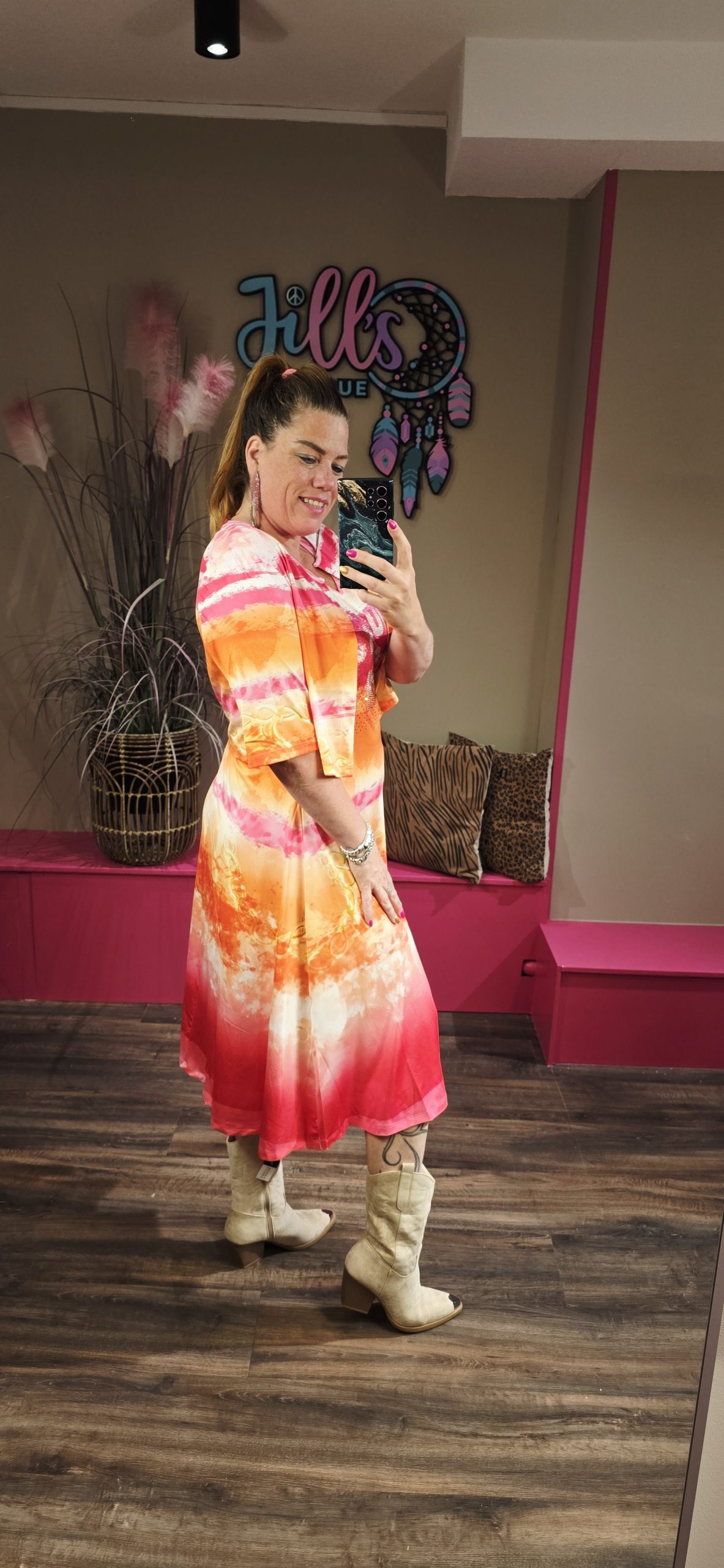 Van een prachtige travel stof gemaakt, de jurken vallen wat ruimer uit.