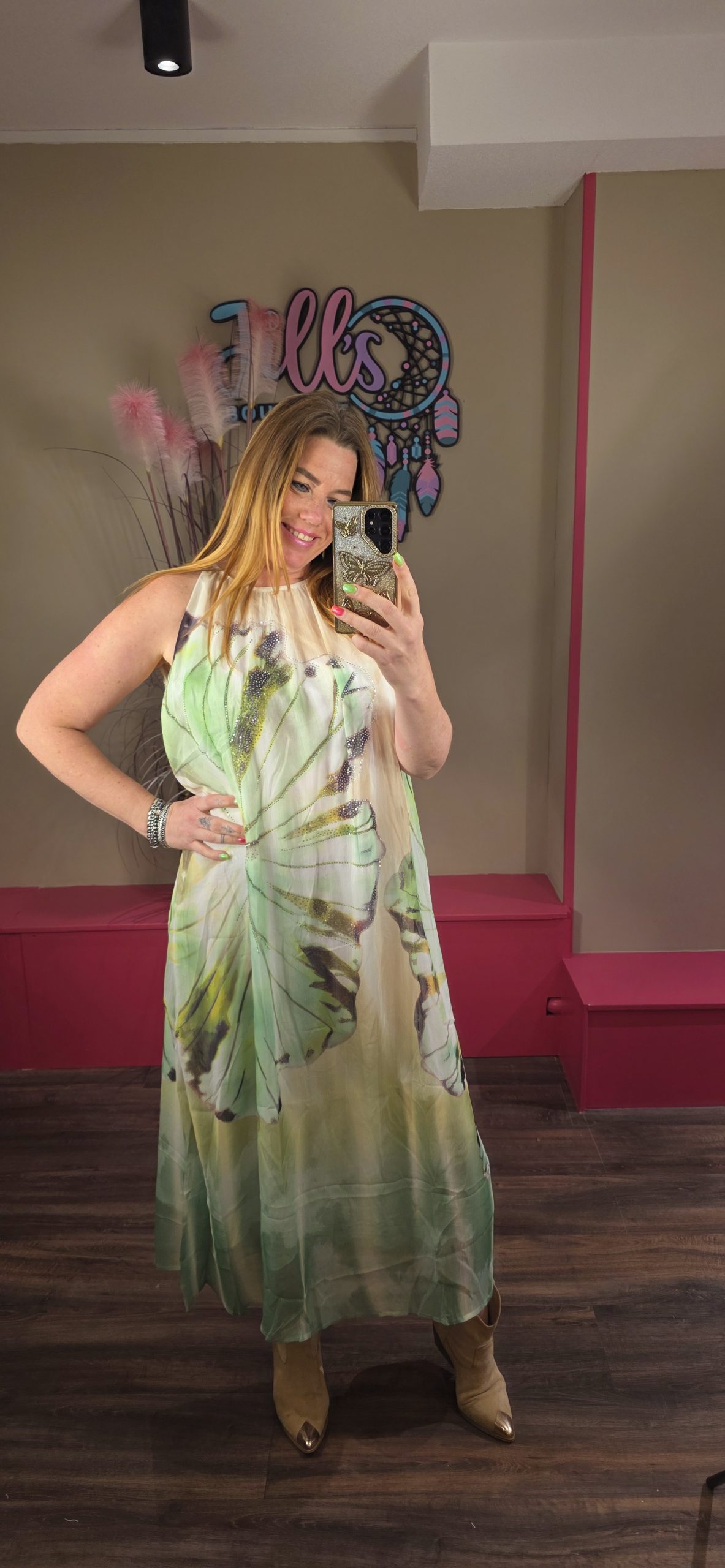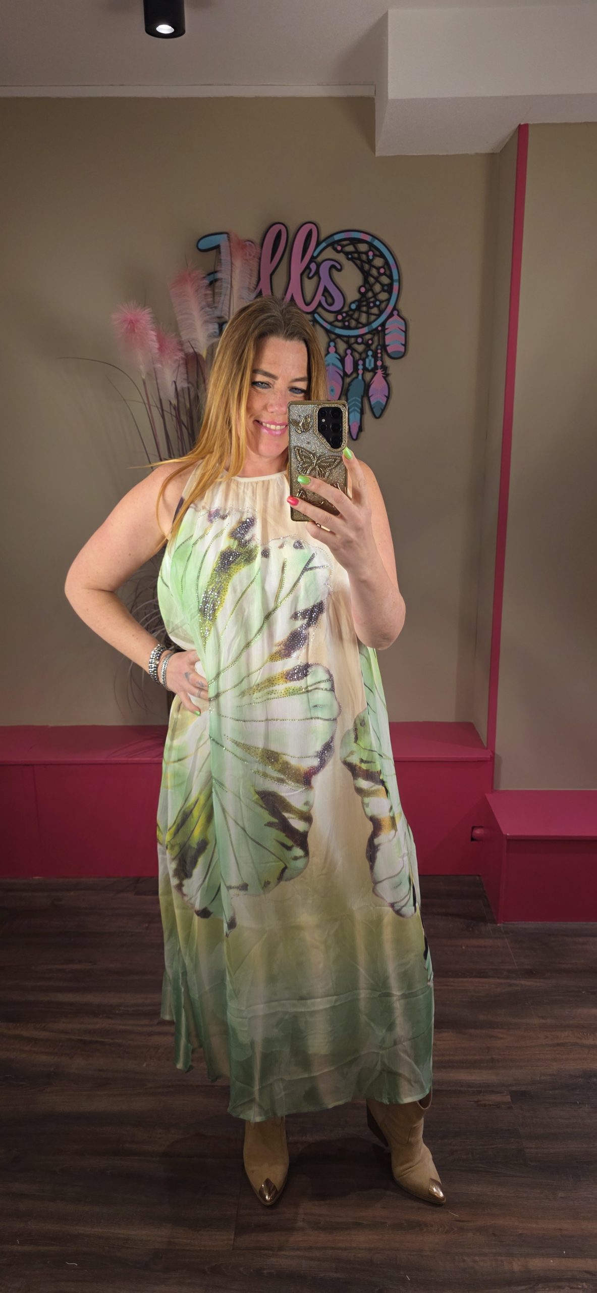 De jurk is weer prachtig bewerkt met strass steentjes en is zelfs gevoerd met een onder jurk.