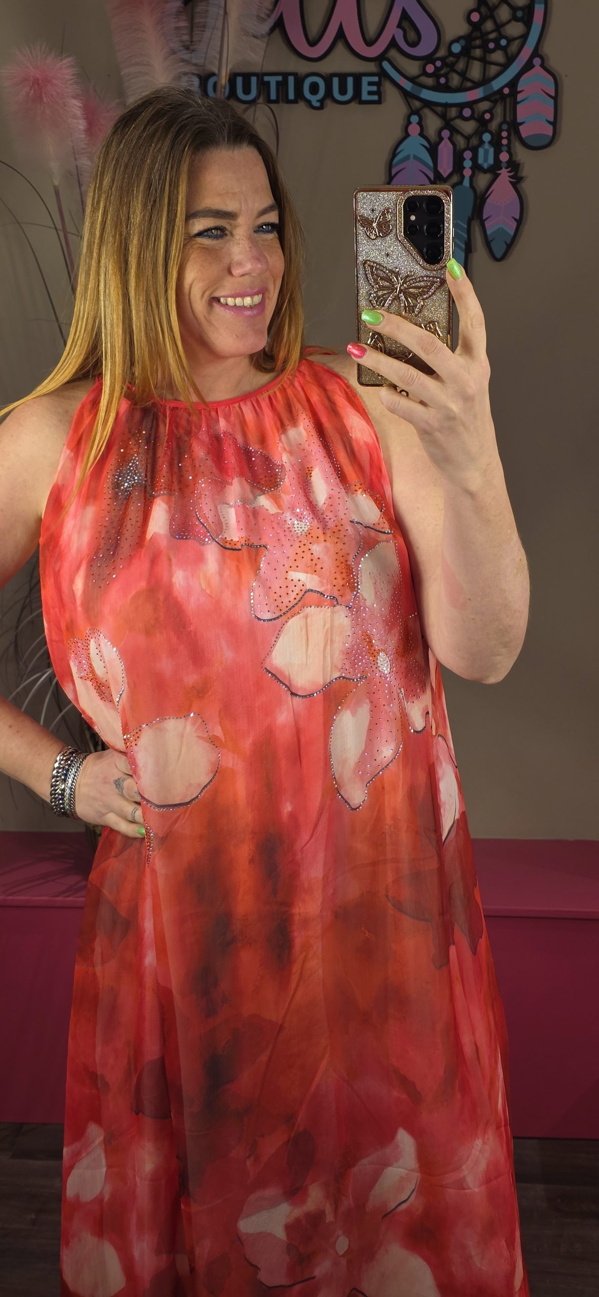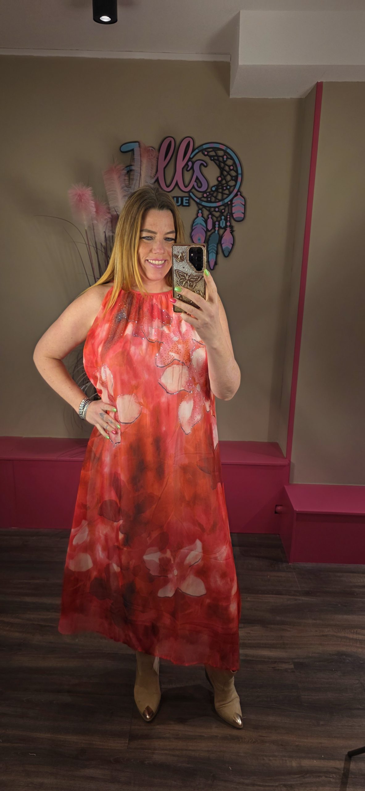 De jurk is weer prachtig bewerkt met strass steentjes en is zelfs gevoerd met een onder jurk.