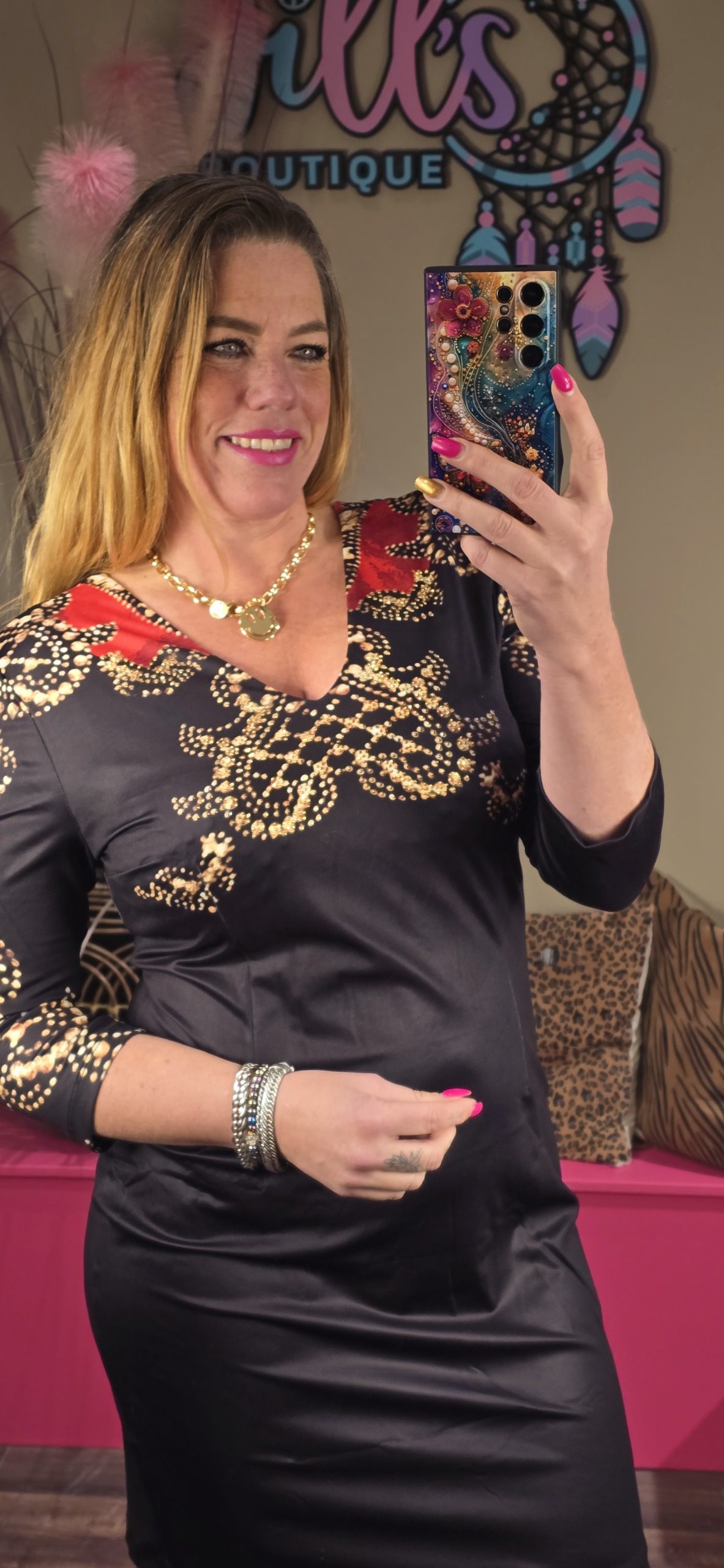 Mooie jurken, bewerkt met mooie strass steentjes. De jurken vallen wel aansluitend. Als je hem niet te strak op de buik wil 1 maat groter bestellen.