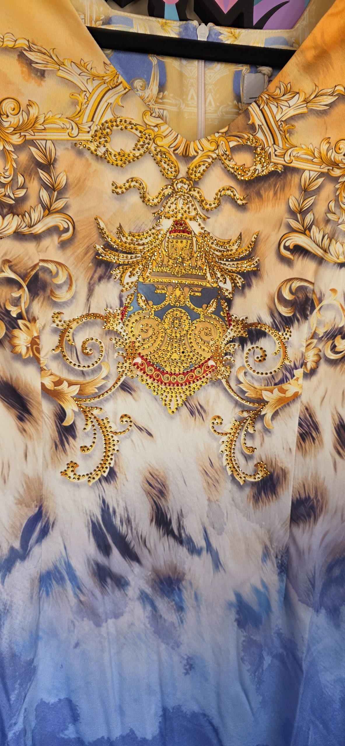 Prachtig mooie jurk bewerkt met strass steentjes en die kleuren zijn zo gaaf!