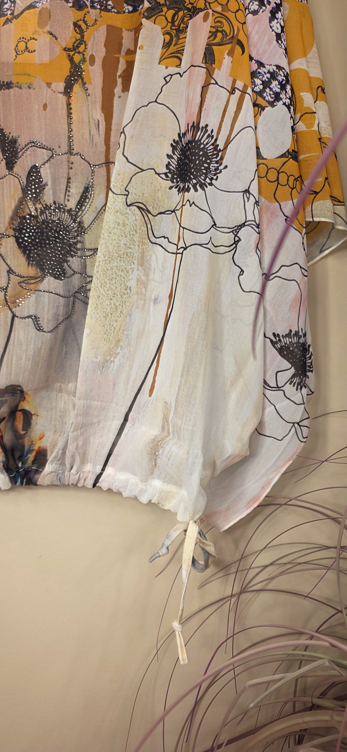 Mooie kaftan die je aan kunt snoeren aan de onderkant, uiteraard weer mooi bewerkt met strass steentjes.