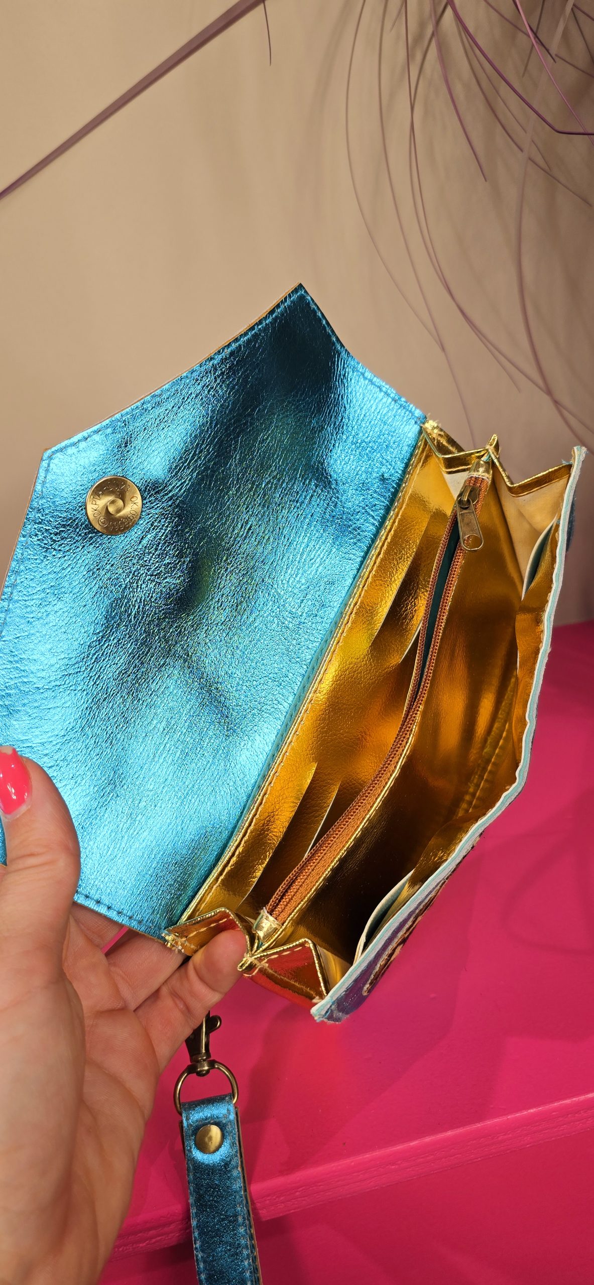 Echt leer! Heel leuk in combi met de tas, dan heb je echt een super set.