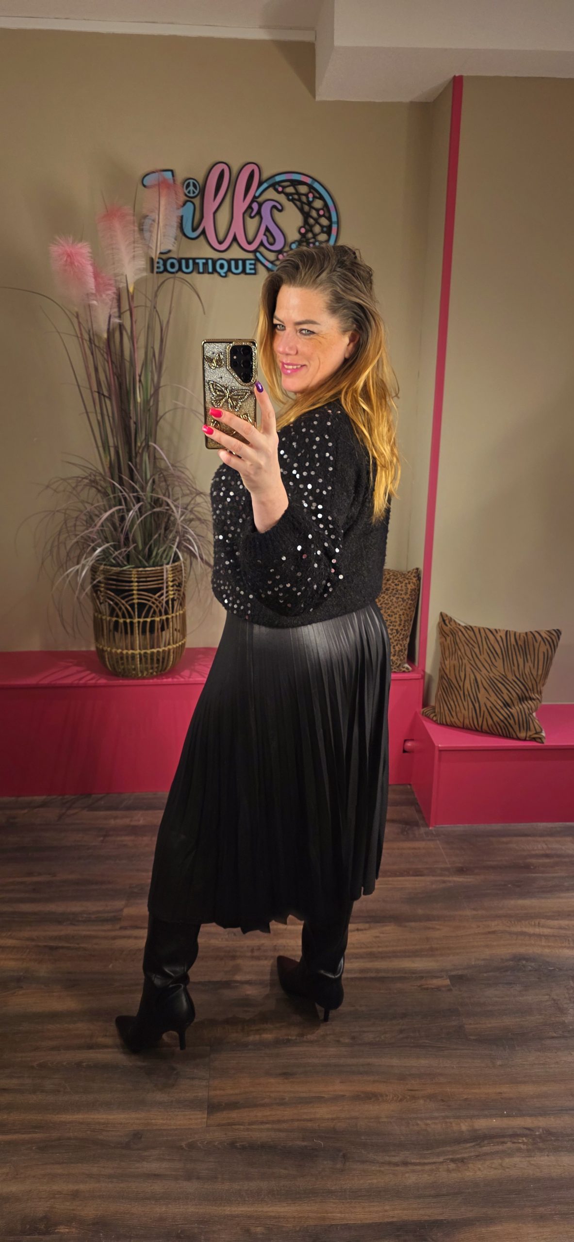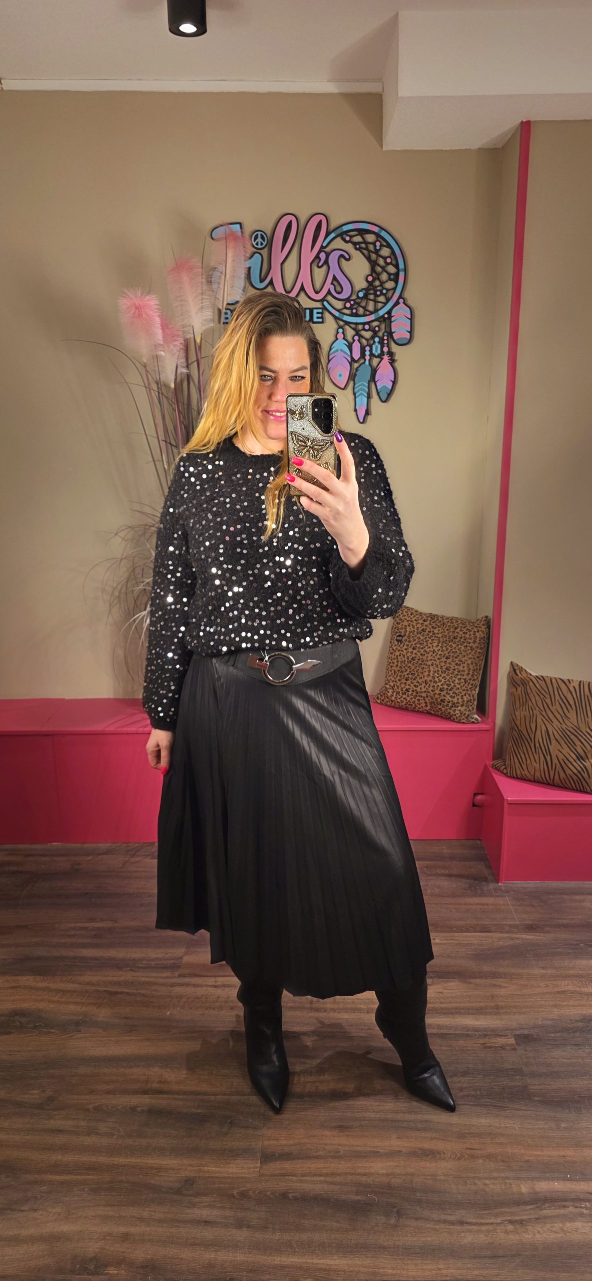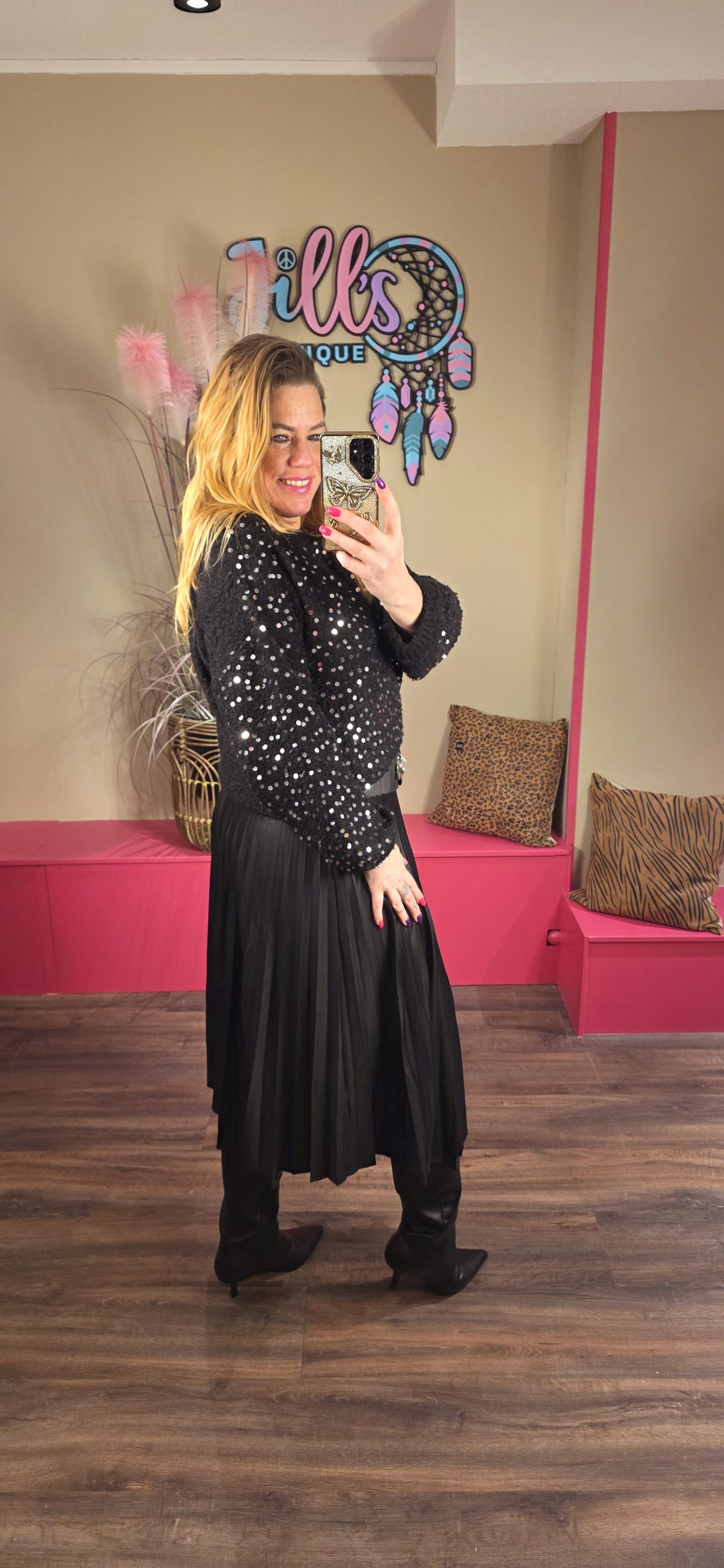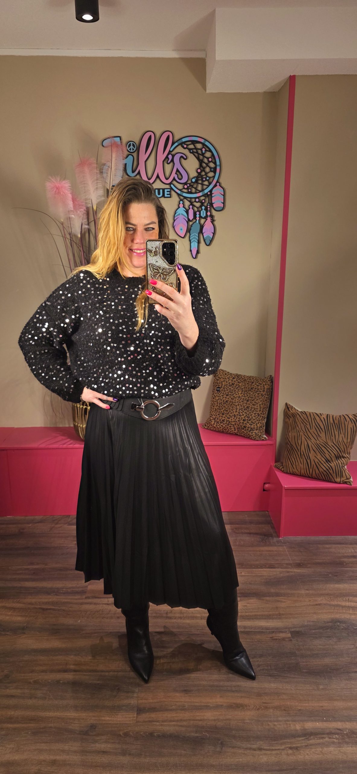 Jill heeft maat 40/42 en draagt hier maat L.