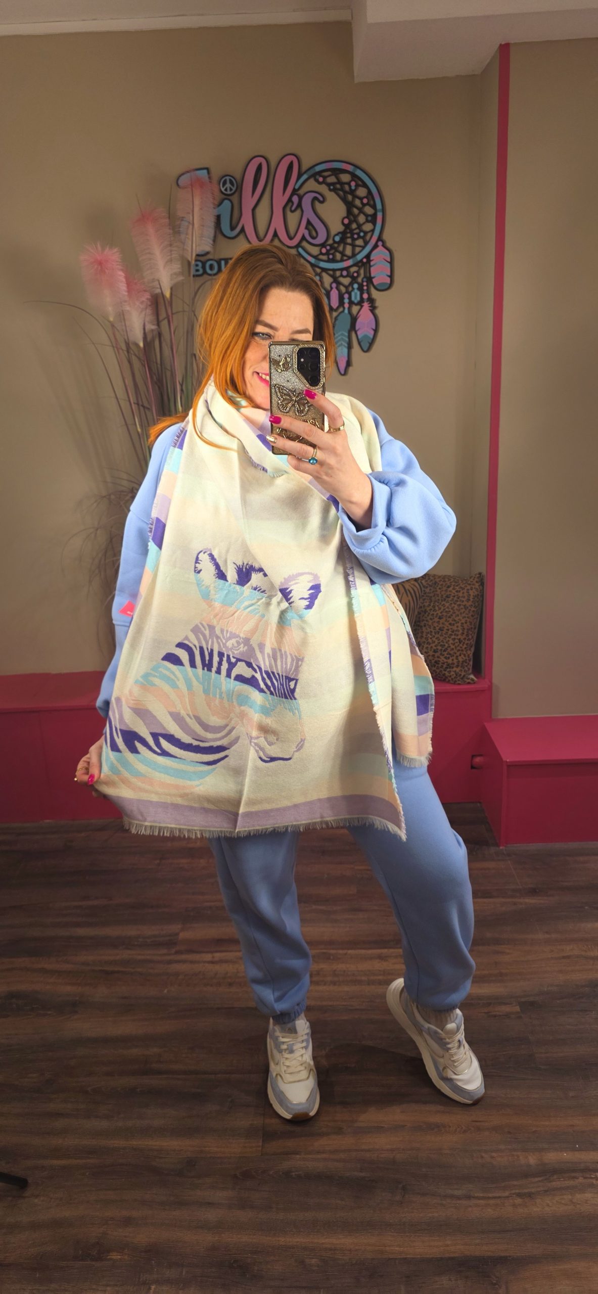 Mooie zachte sjaals die aan 2 kanten prachtige bewerking met gave kleuren hebben.