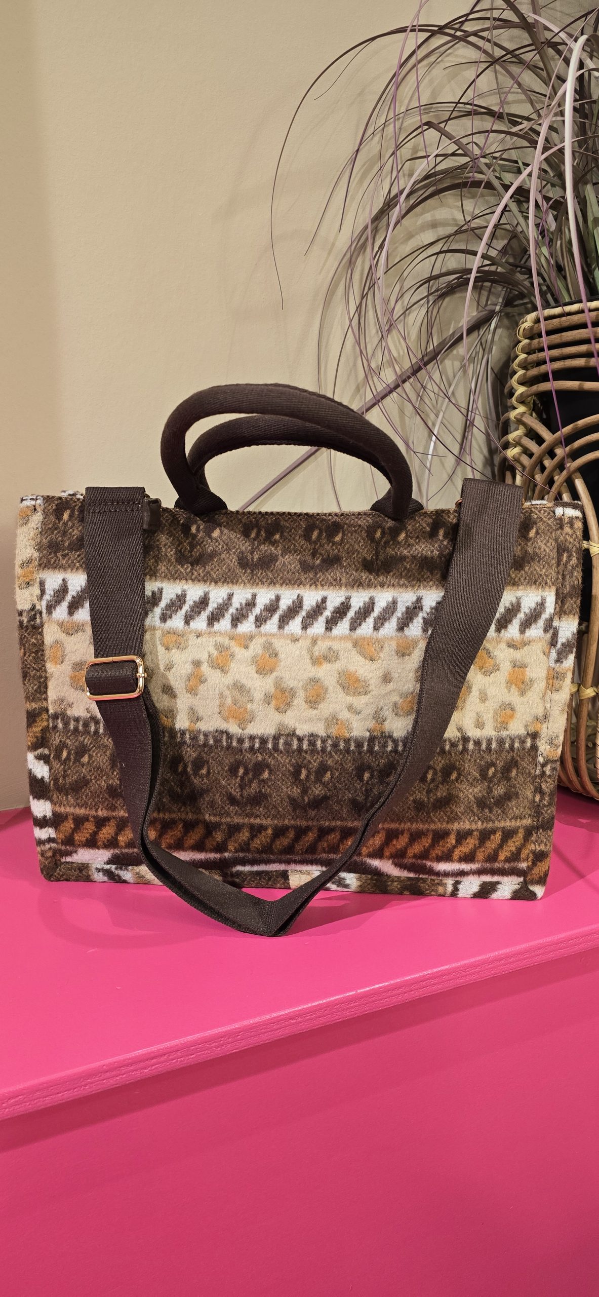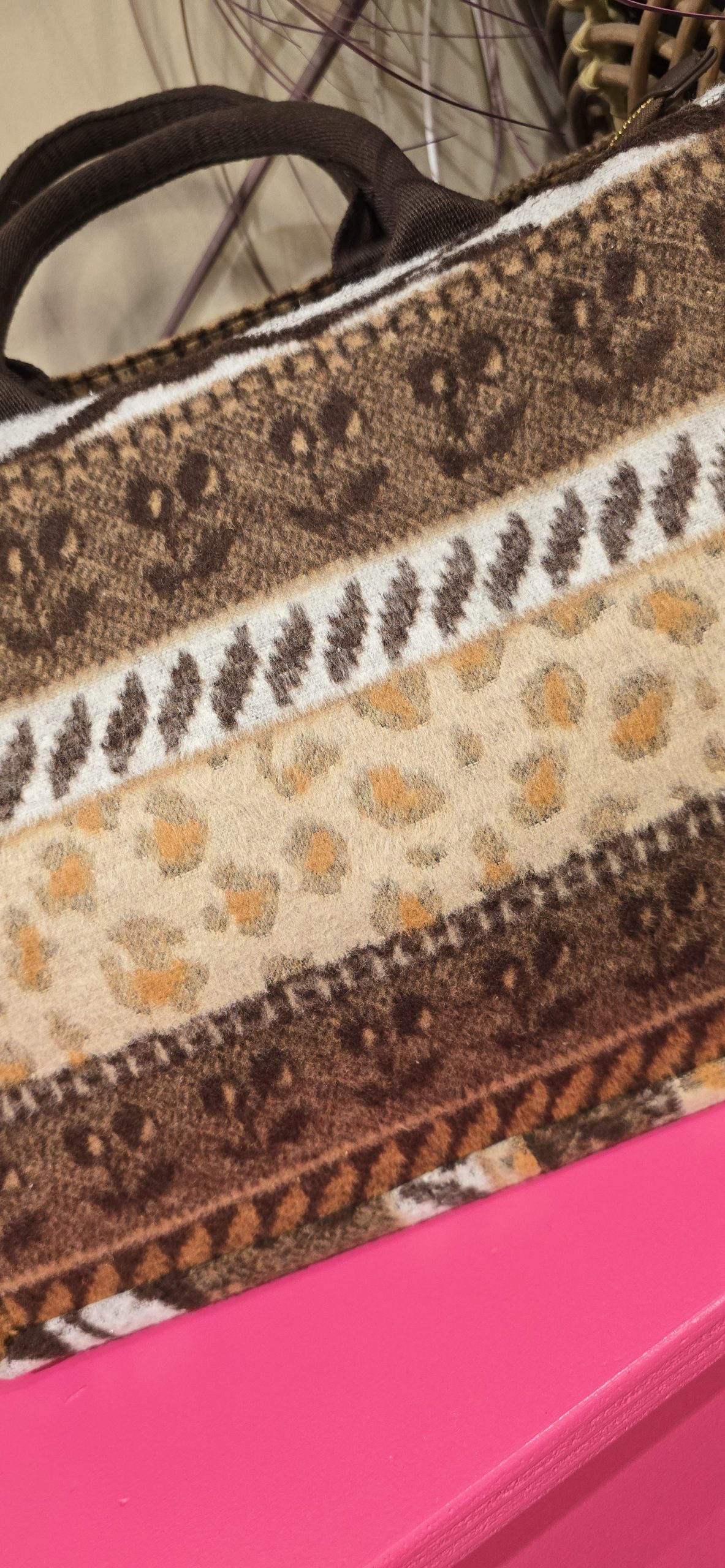 Mooie stevige <tapijt> tas die met een hengsel komt.
