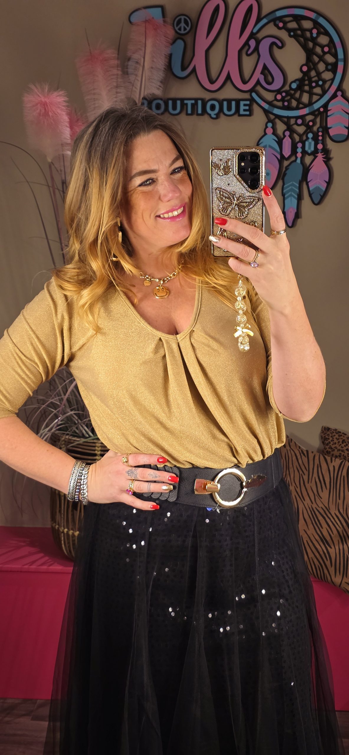 Super fijne travel ballon top, de top heeft een elatische boord onderin waardoor de top blousend valt en dus buikverhullend is.