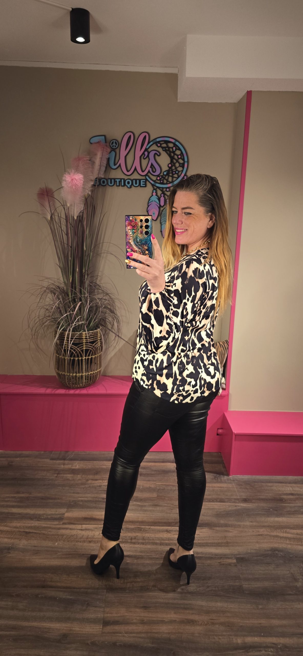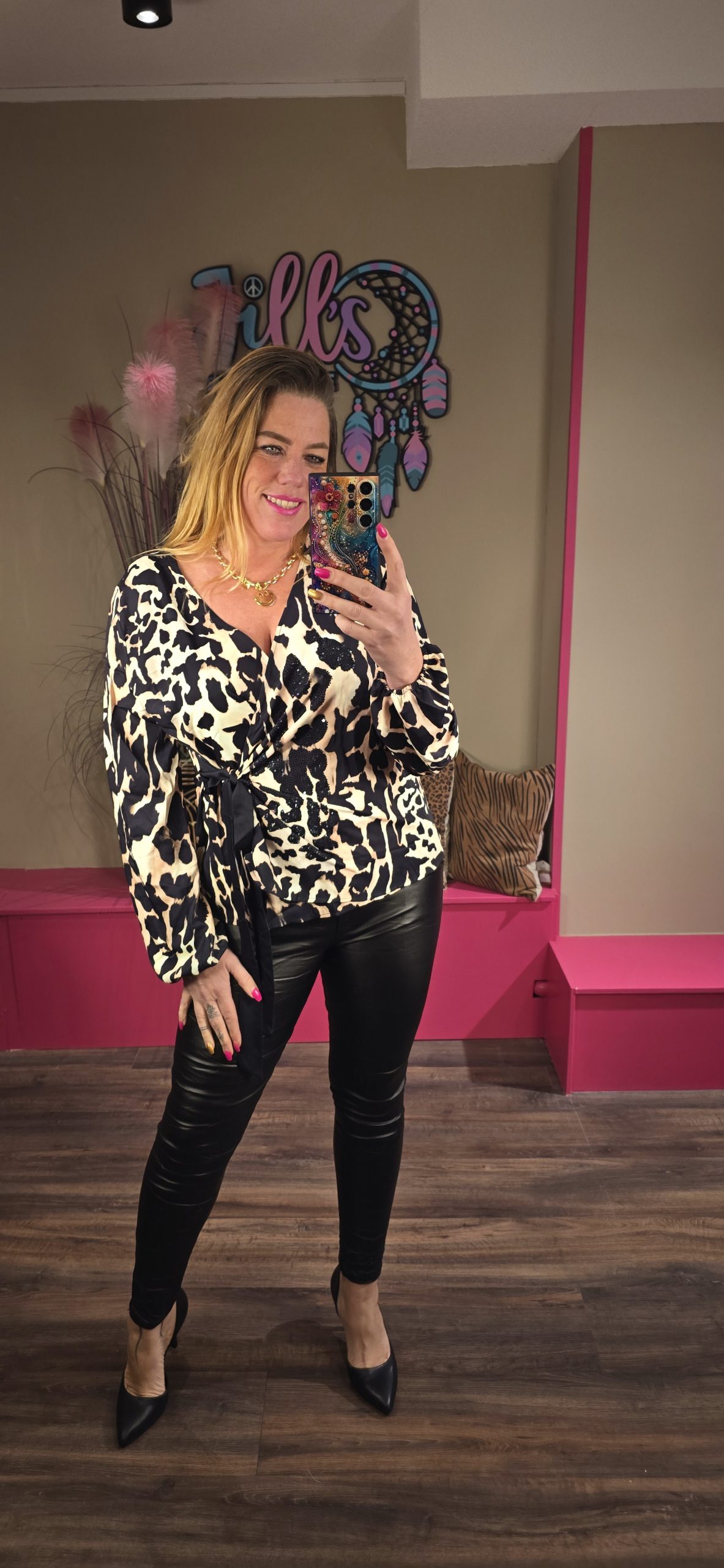 Jill heeft maat 40/42 en draagt hier maat L