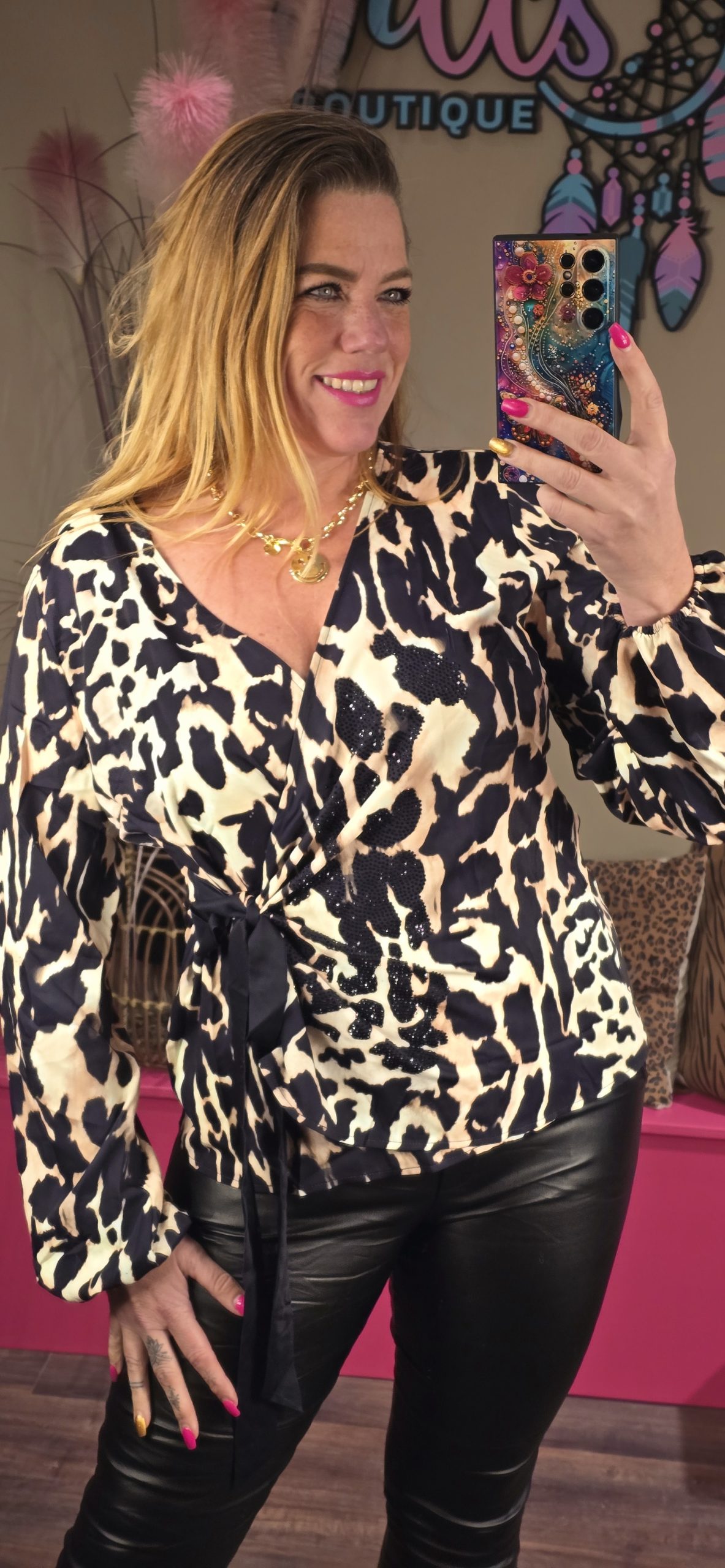 Mooie top die je strikt op het voorpand, de top is verbloemend hierdoor en zeg nou eerlijk? Daar houden we allemaal van toch!