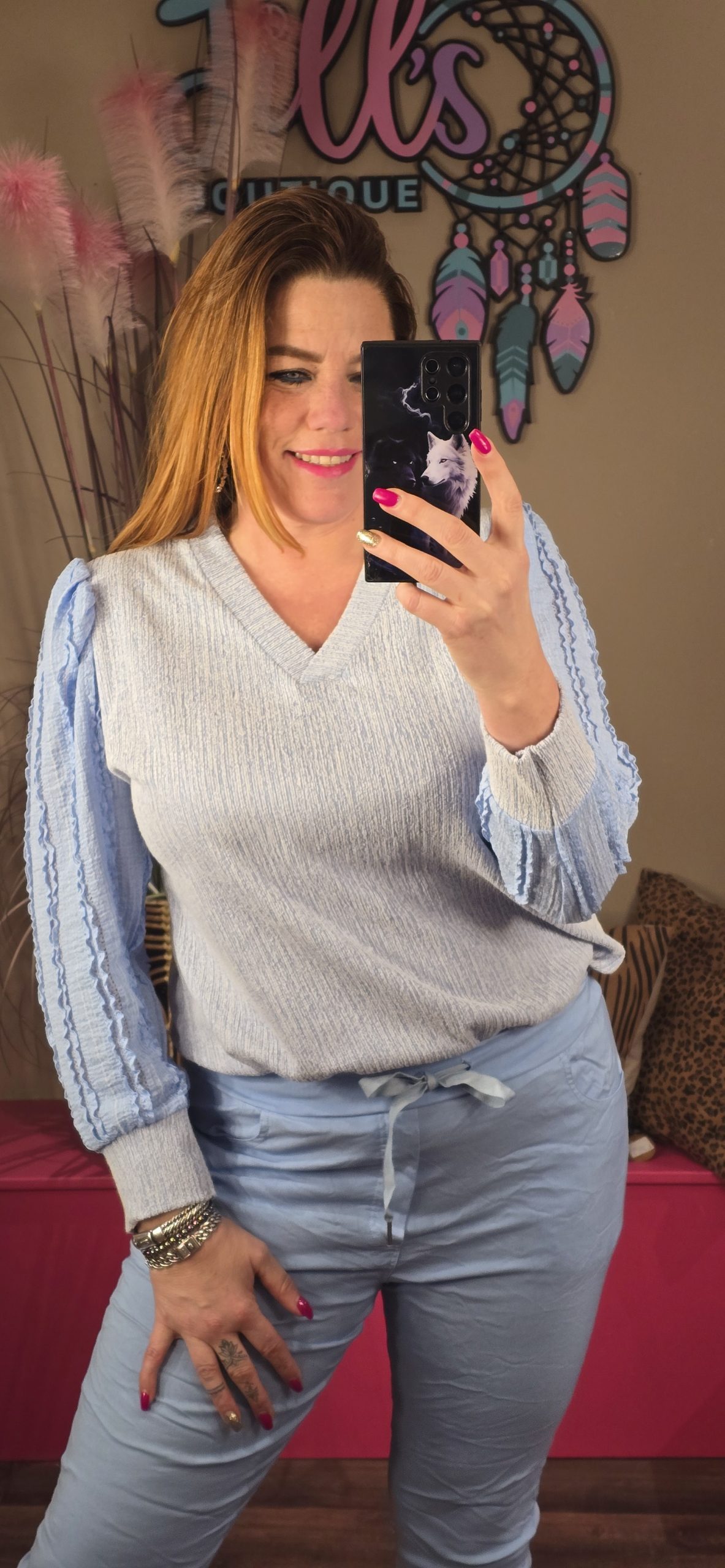 Hele mooie zachte blouse tops met een leuke pofmouw en kleine v-hals.