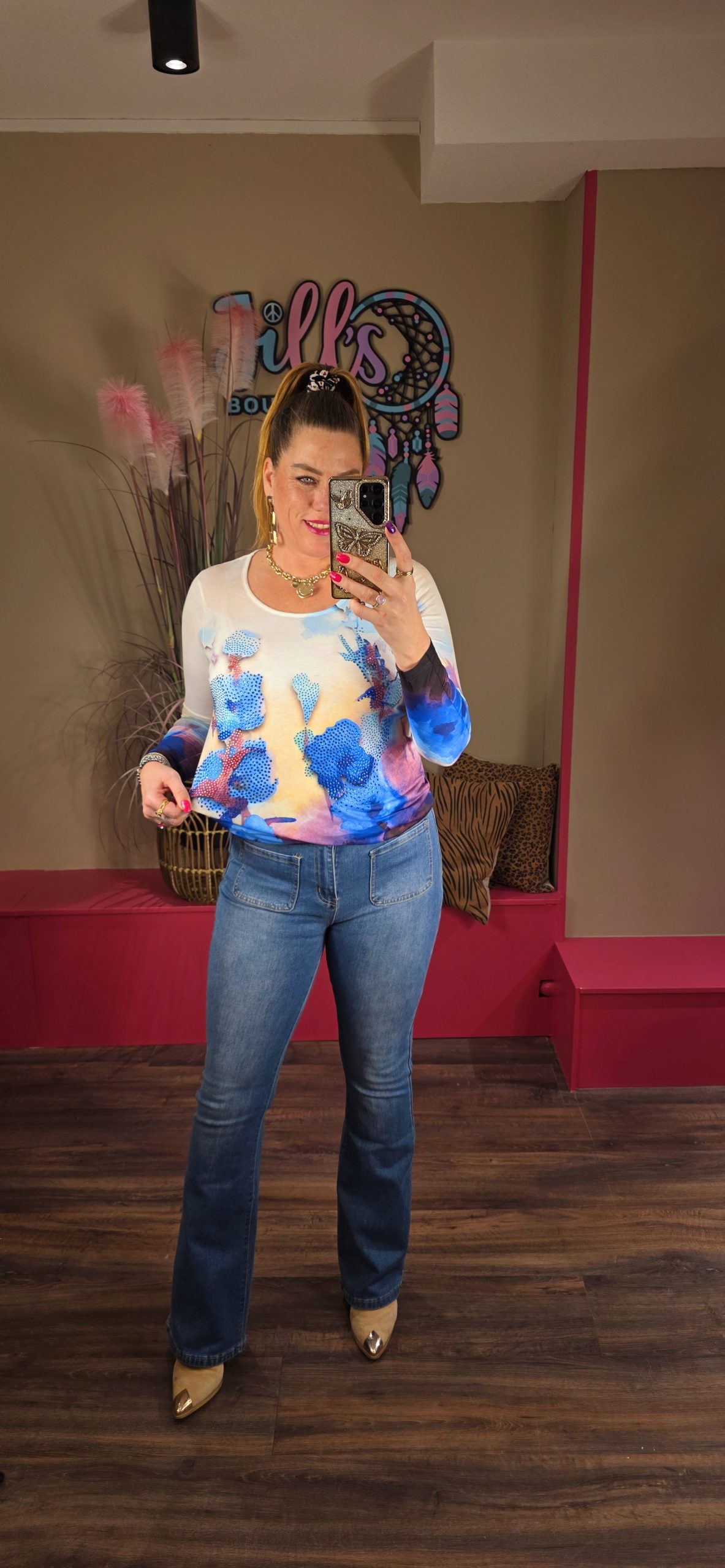 Super fijne ballon truitjes van een lekkere zachte stof gemaakt, de tops hebben een strakkere onderkant waardoor ze blousen en dus buik verhullend zijn. Op het voorpand bewerkt met super gave strass steentjes.