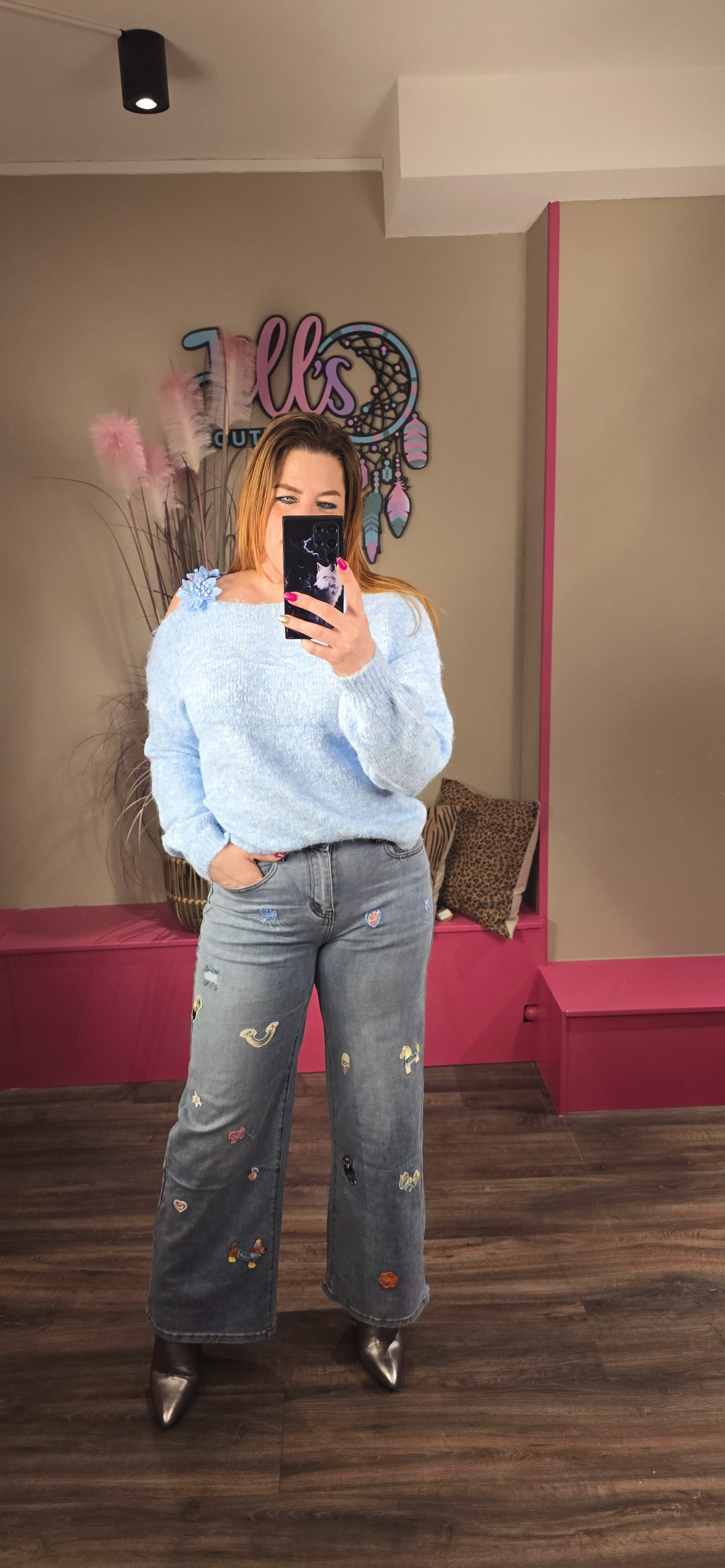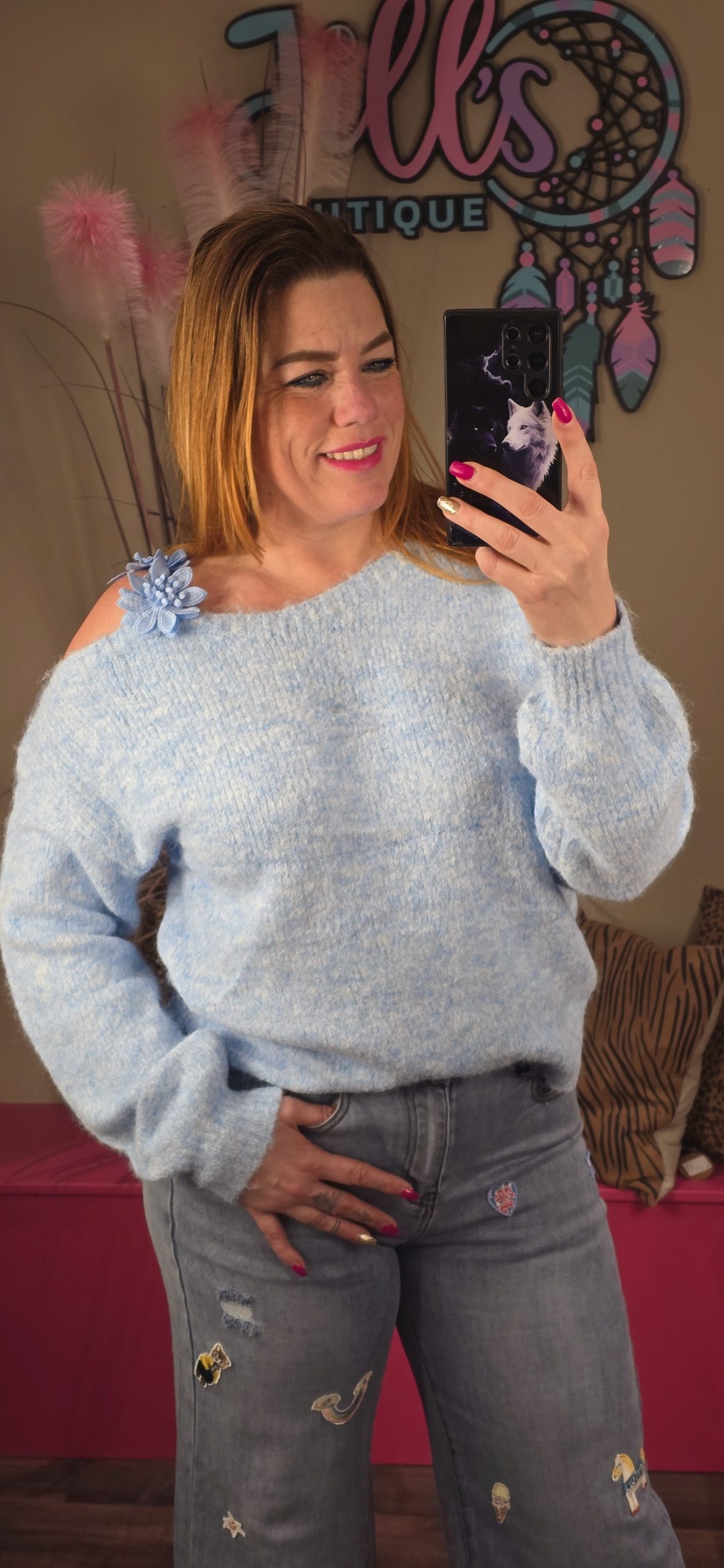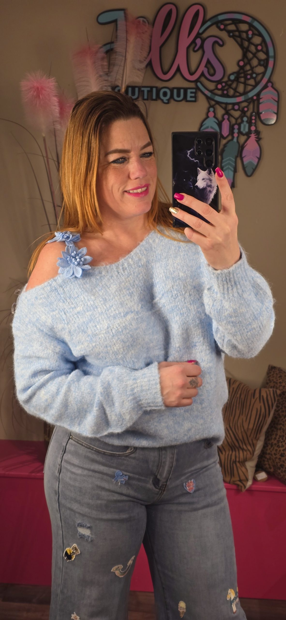 Hele mooie zachte truien met een Madelief bandje op de schouder.