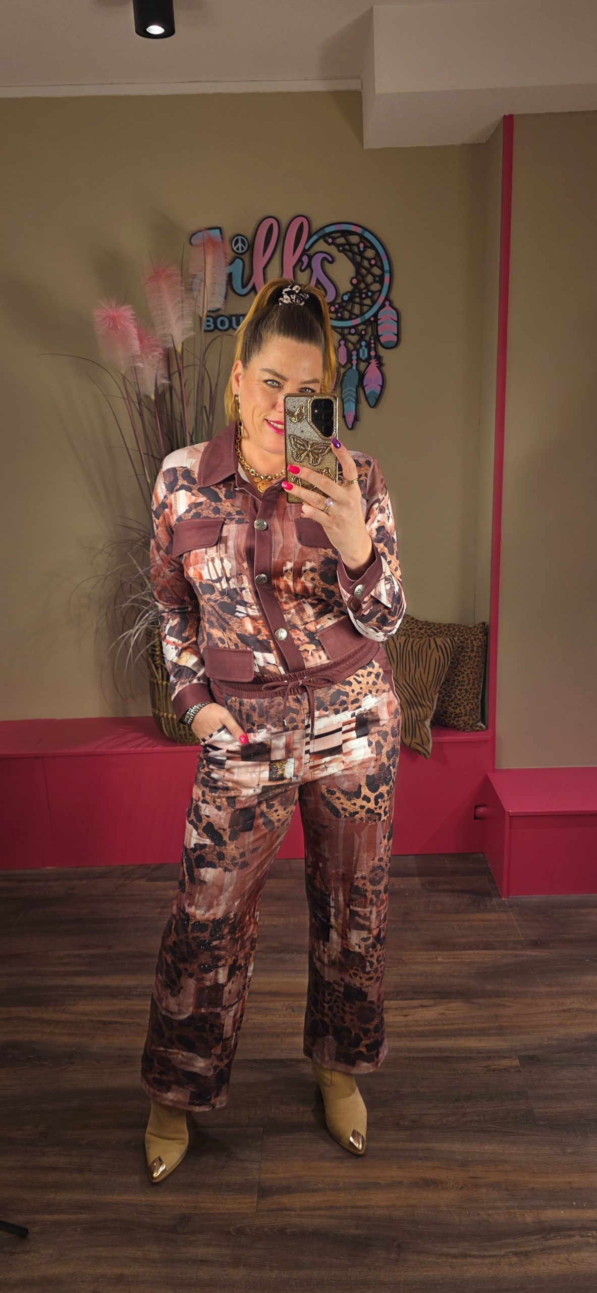 Hele gave tweedelige set van een super zachte jog stof gemaakt. De broeken vallen wat korter  dus perfect voor de kleinere dames.
