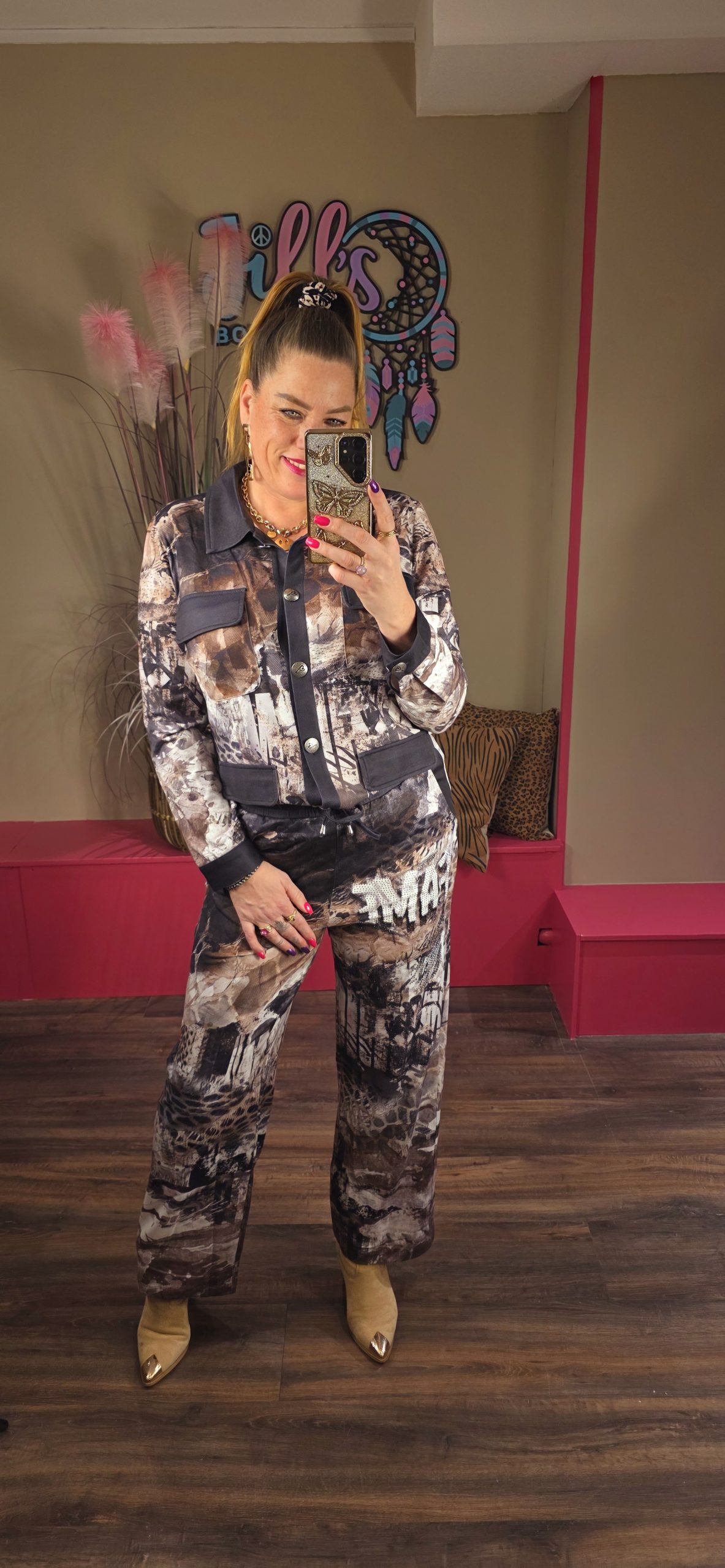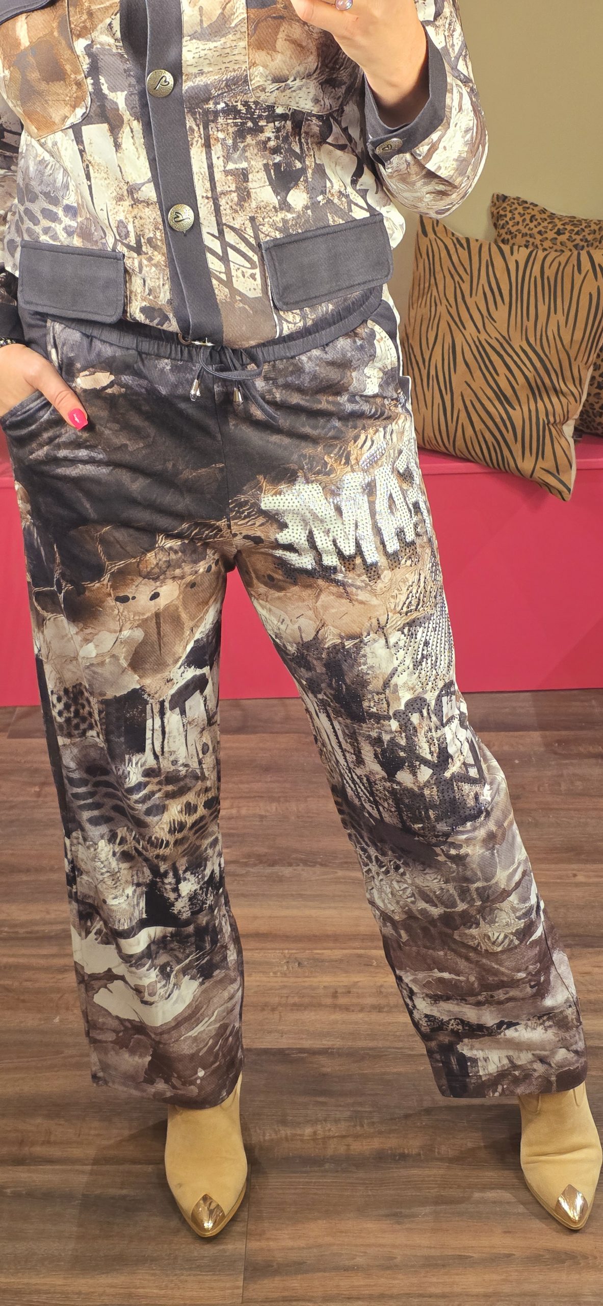 Hele gave tweedelige set van een super zachte jog stof gemaakt. De broeken vallen wat korter  dus perfect voor de kleinere dames.