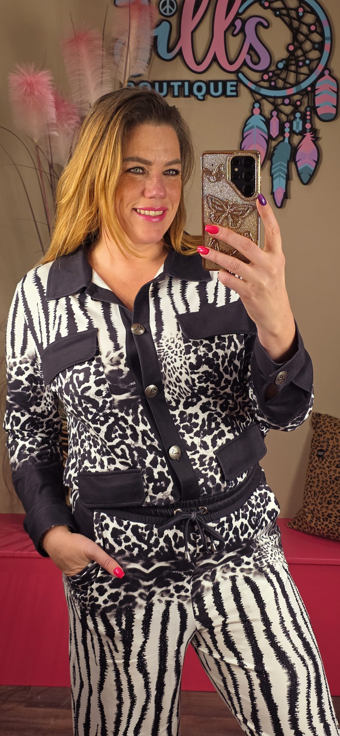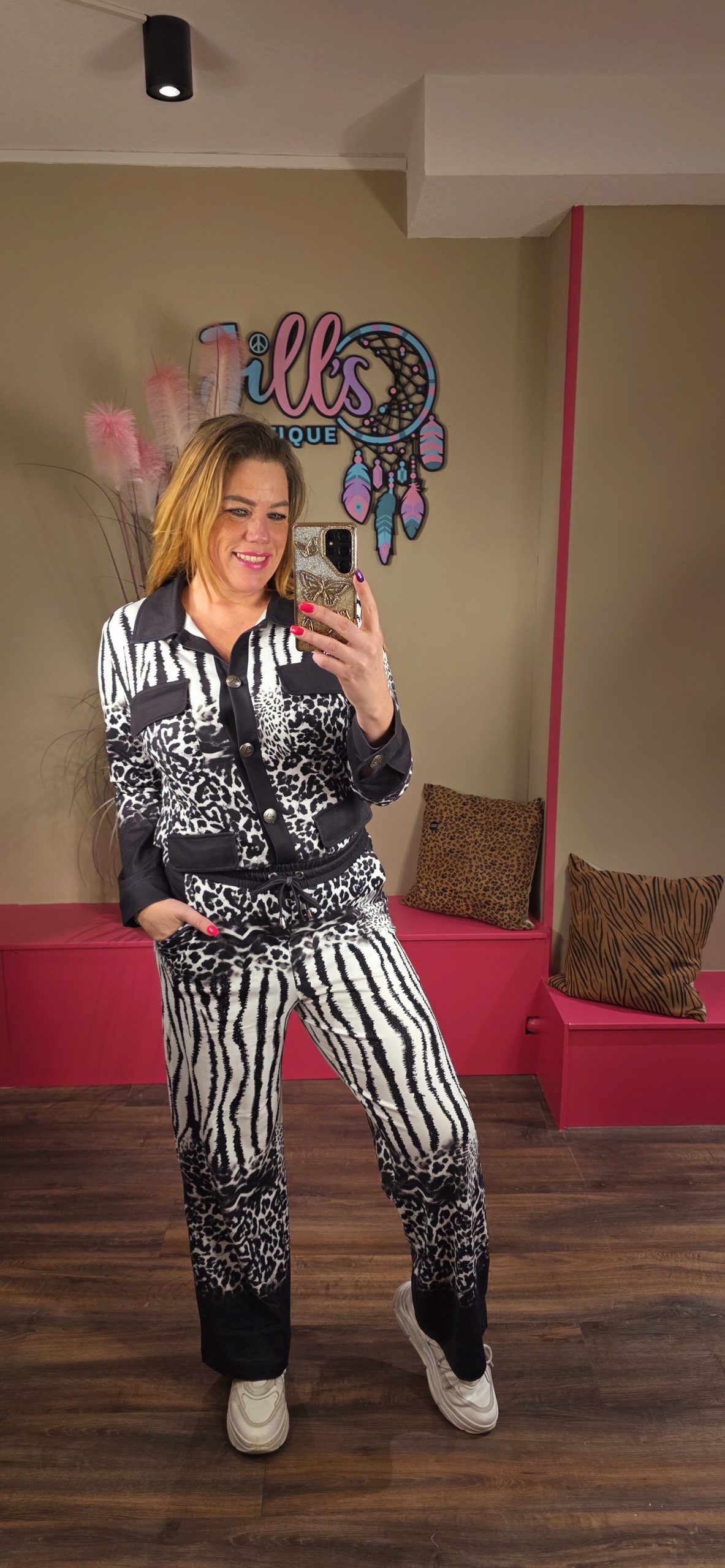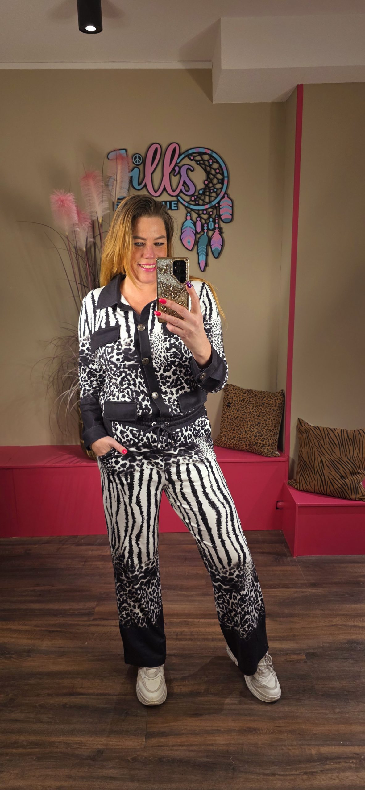 Hele gave tweedelige set van een super zachte jog stof gemaakt. De broeken vallen wat korter dus perfect voor de kleinere dames.