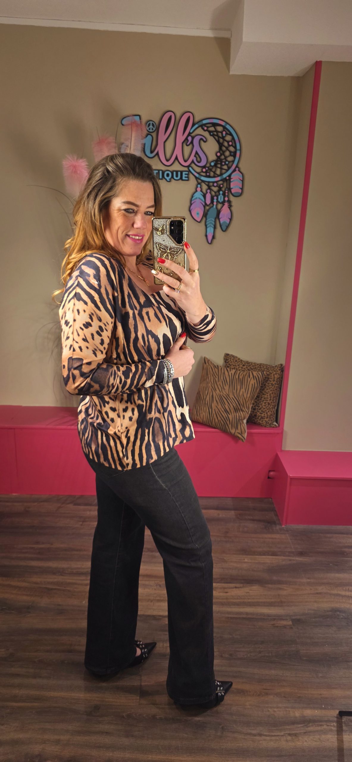 Jill heeft maat 40/42 en draagt hier maat M/L, hij zit wel echt aansluitend wil je hem iets losser dragen bestel dan een maatje groter.